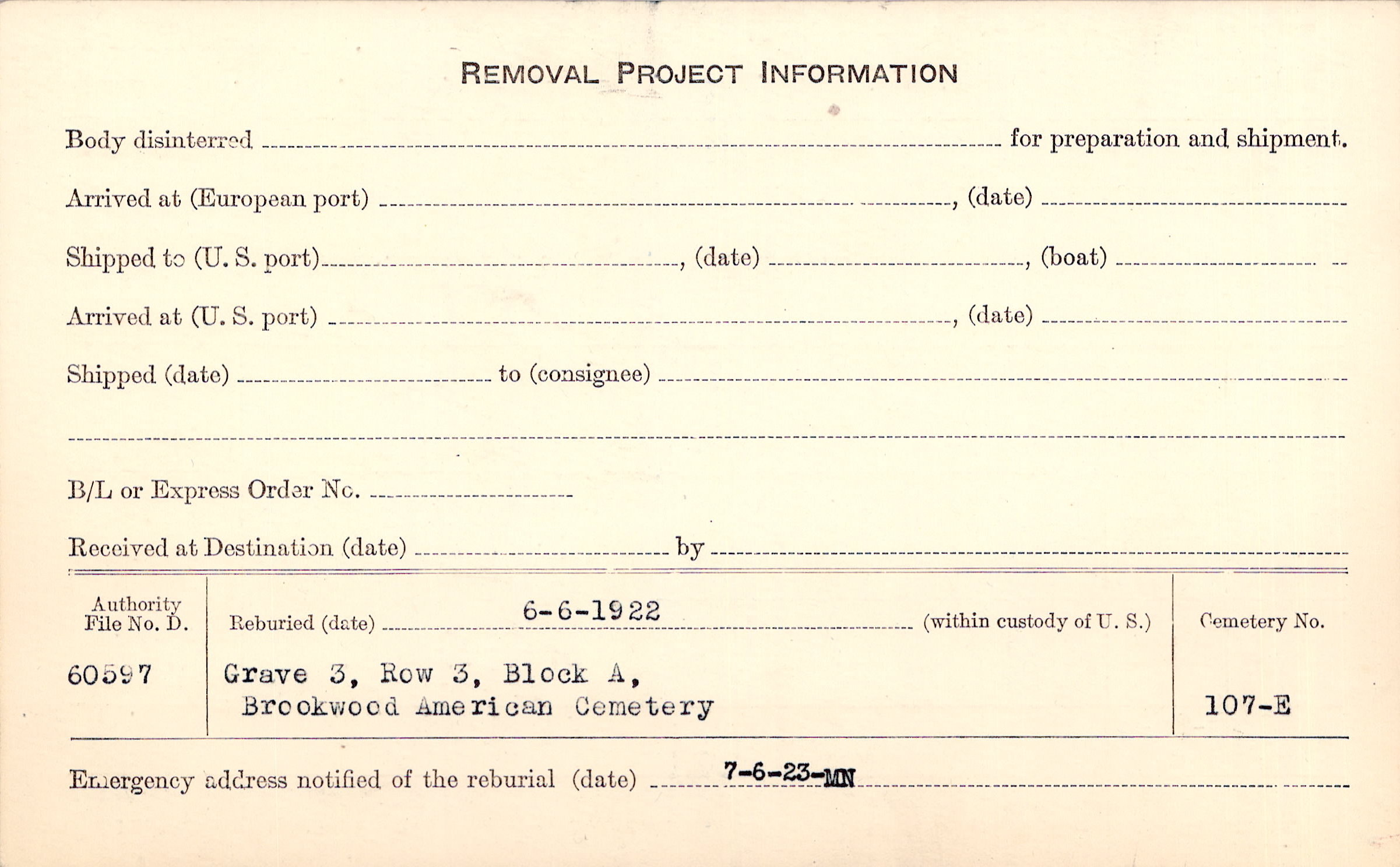 | Permanent Burial in Foreign Cemetery |