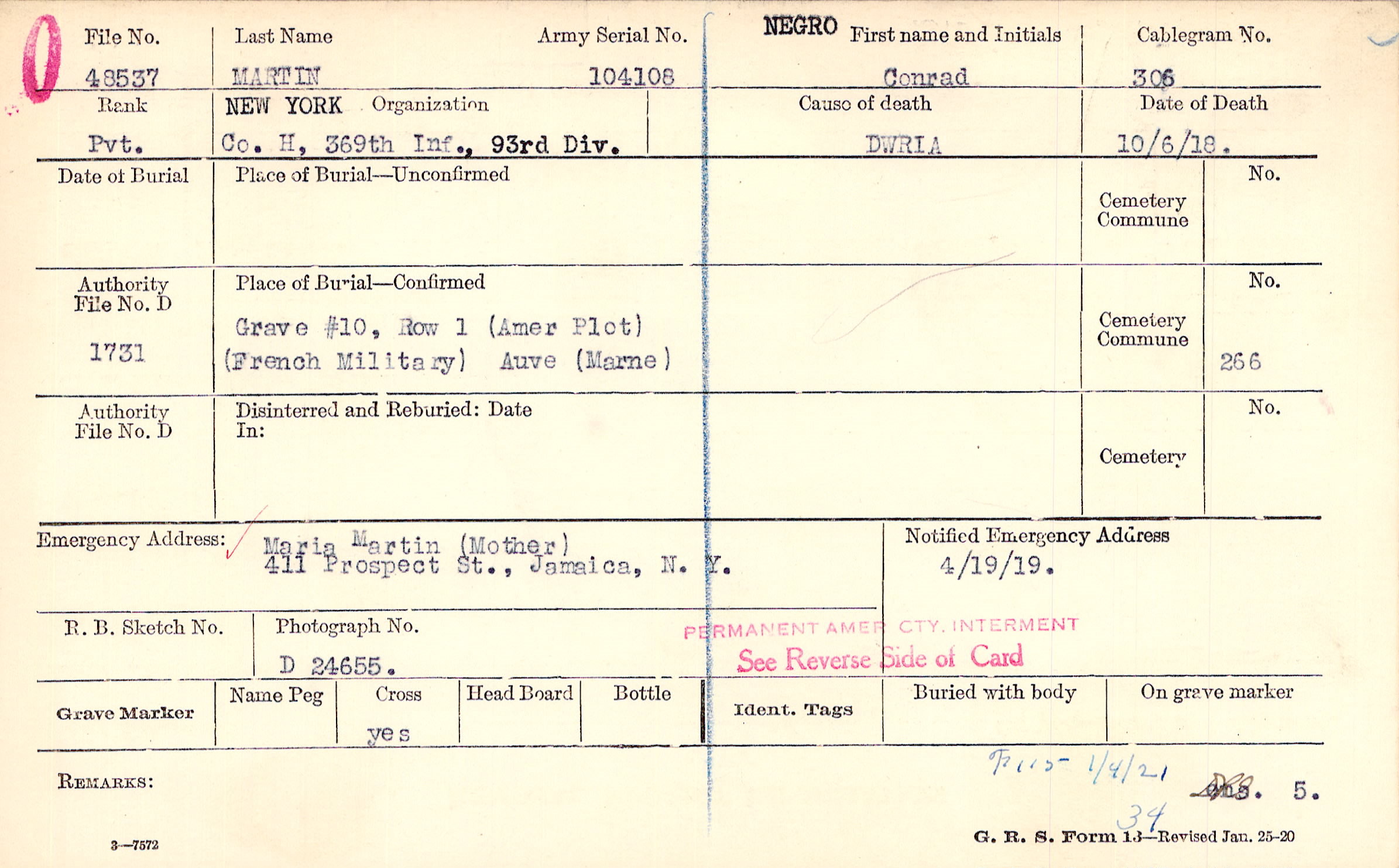 Maria Martin (Mother), 411 Prospect St., Jamaica, N. Y.