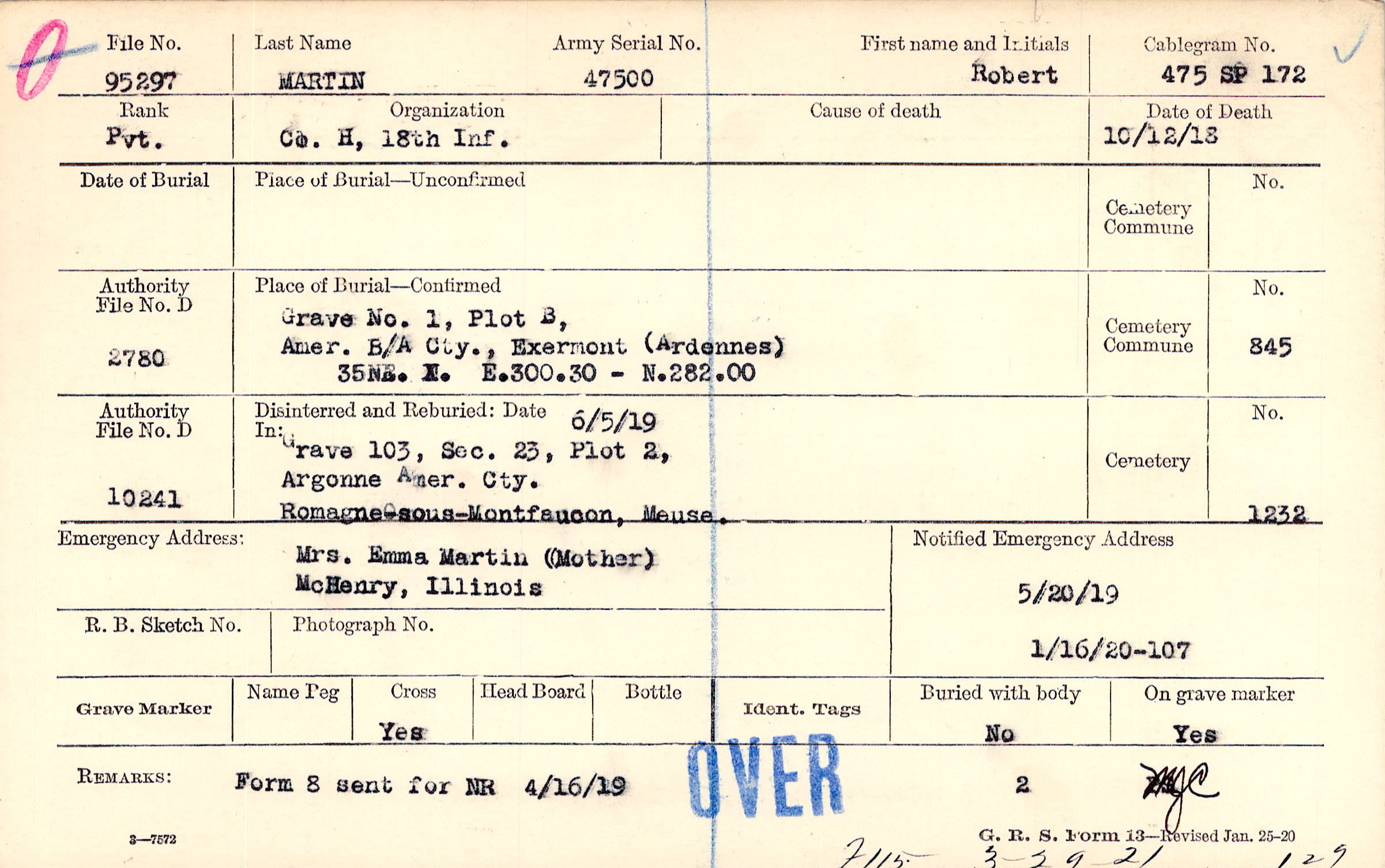 Grave 1, Plot B, Amer. B/A Cty., Exermont, Ardennes, 35 NE