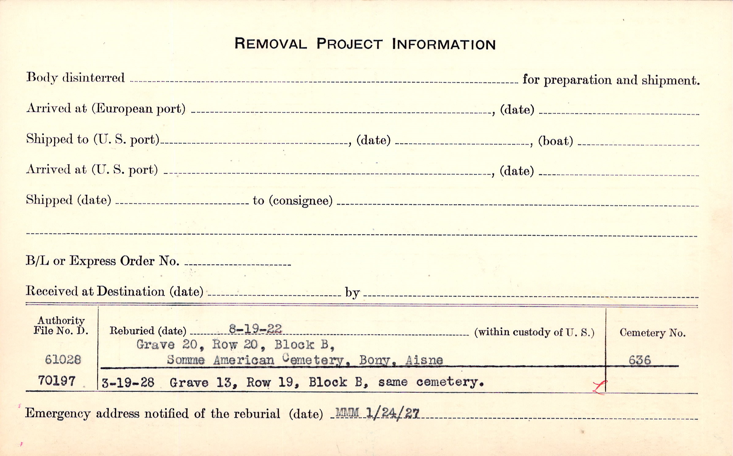 Grave 17, Block T, Row B, St. Sever Cty., Rouen, Seine Inferieure.
