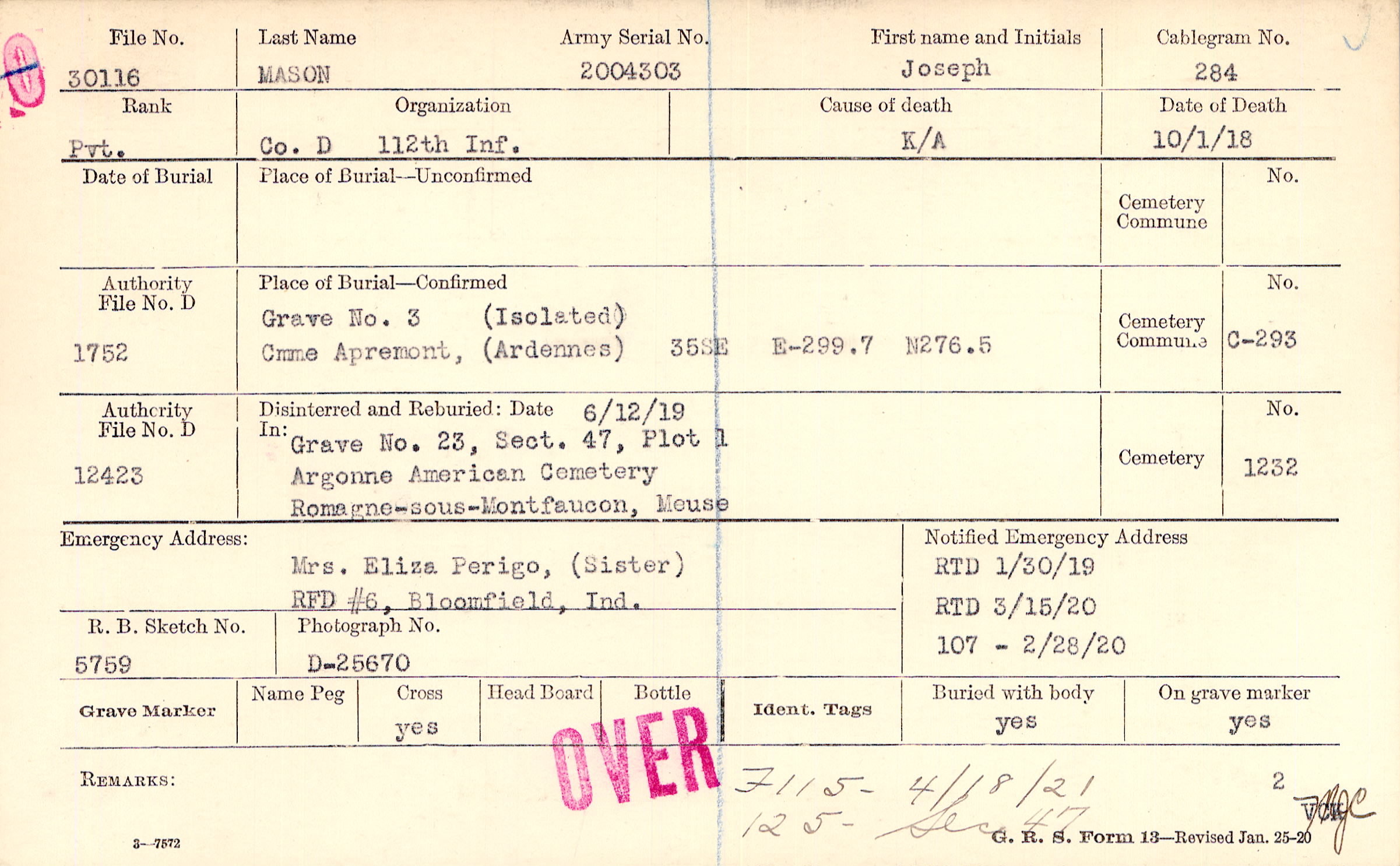 Army Serial No. |