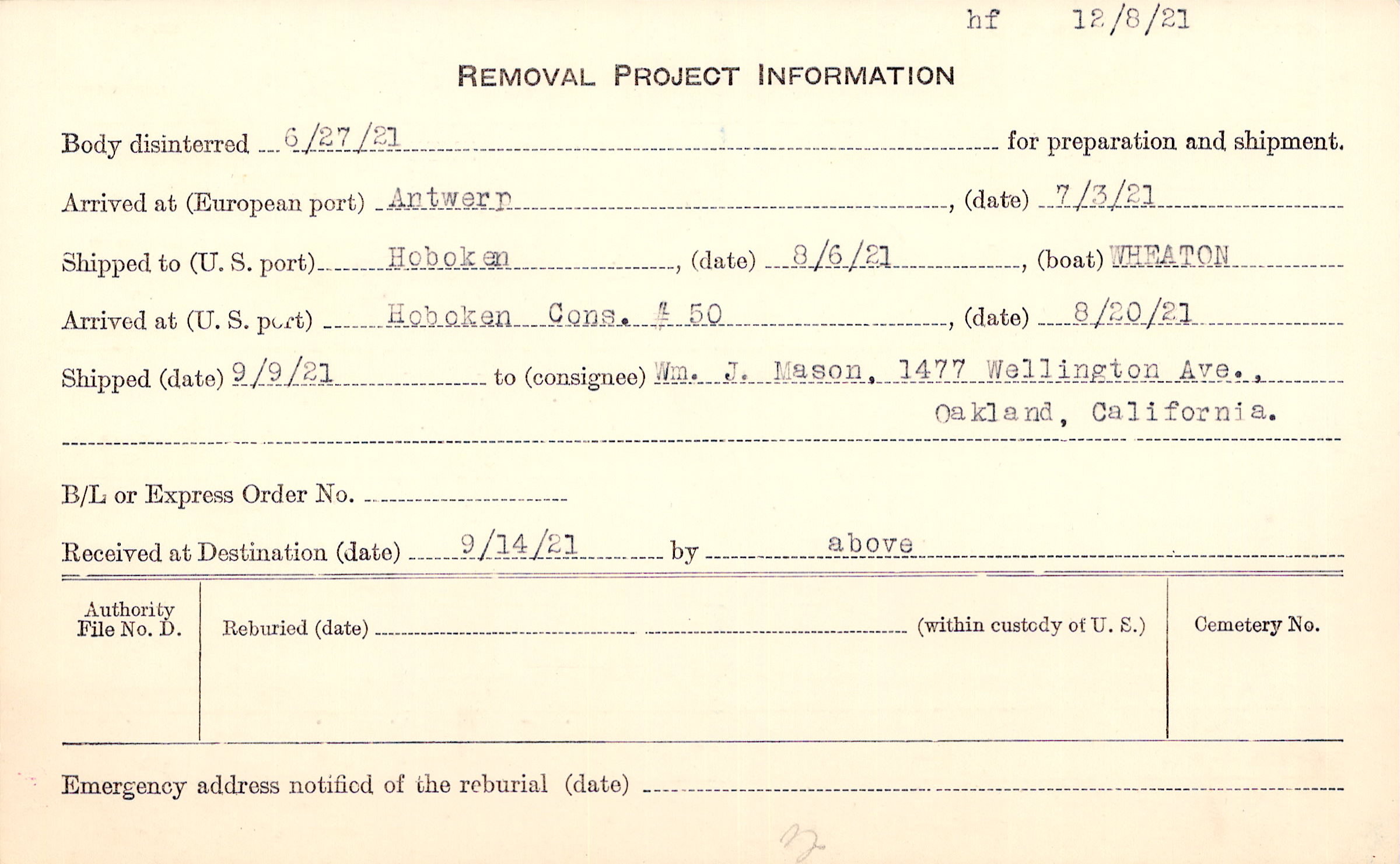 to Wm. J. Mason, 1477 Wellington Ave., Oakland, California