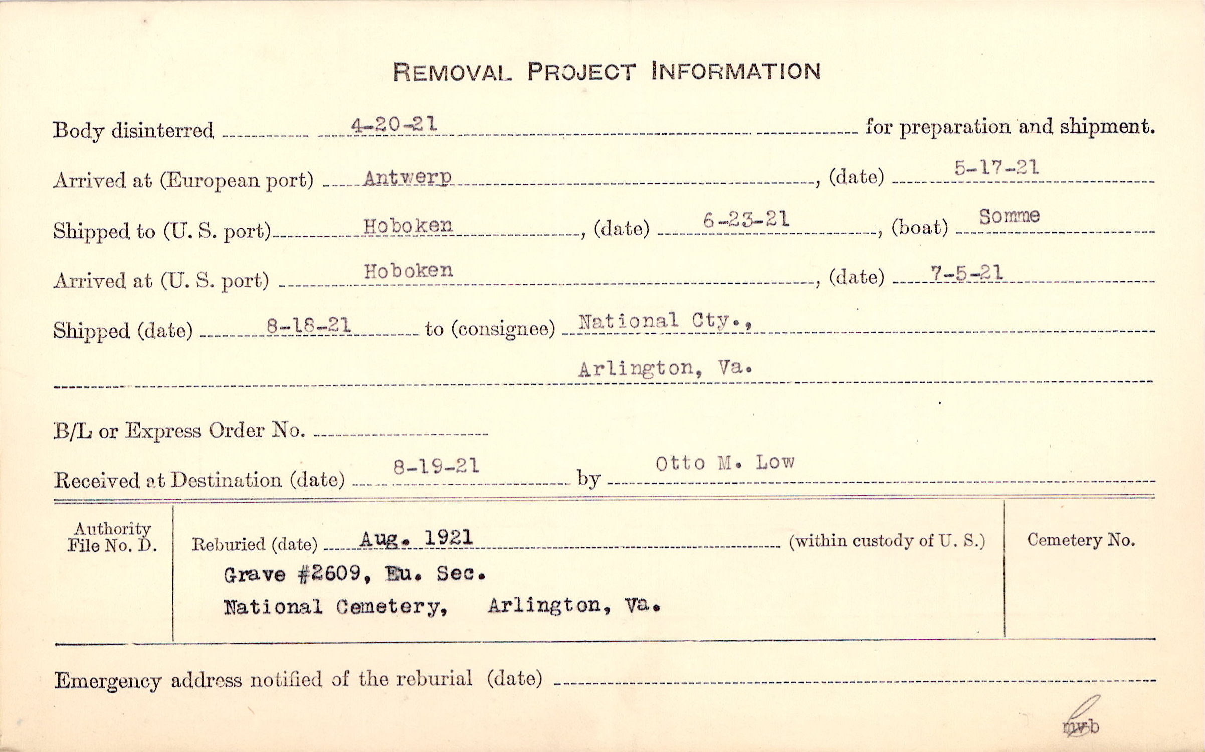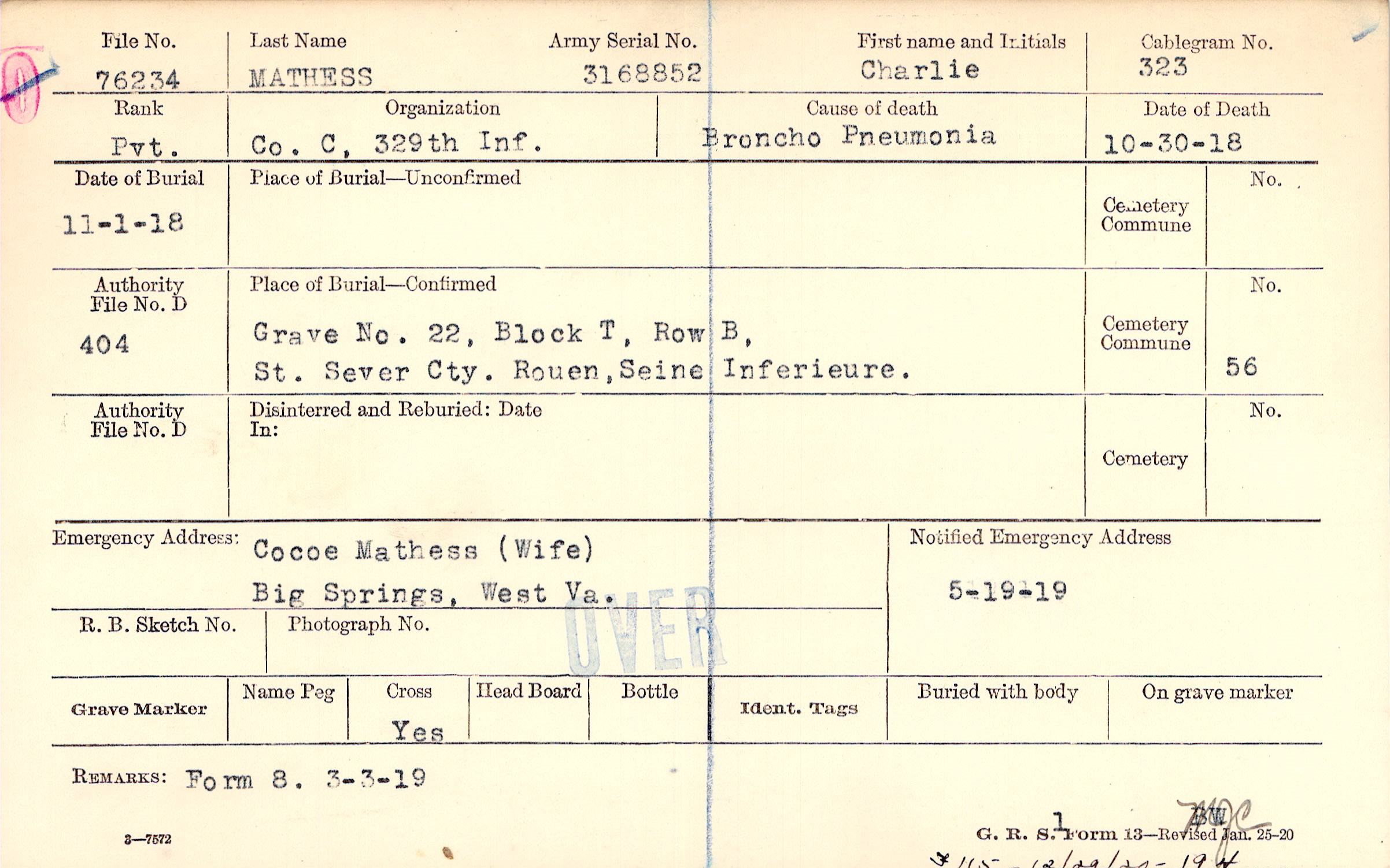 Grave 22, Block T, Row B, St. Sever Cty., Rouen, Seine Inferieure.