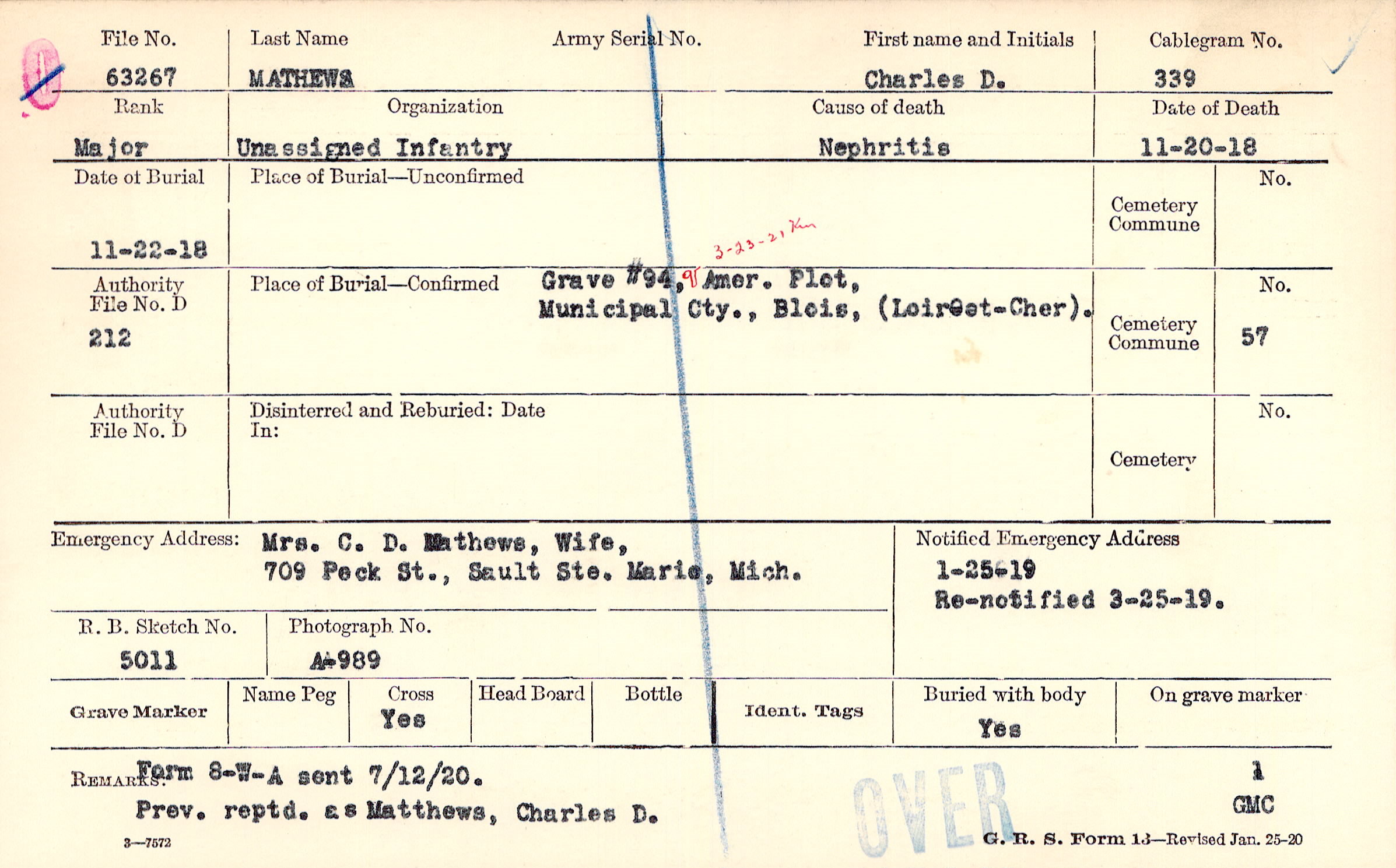 Grave #94, Amer. Plot, Municipal Cty., Blois, Loir-et-Cher.
