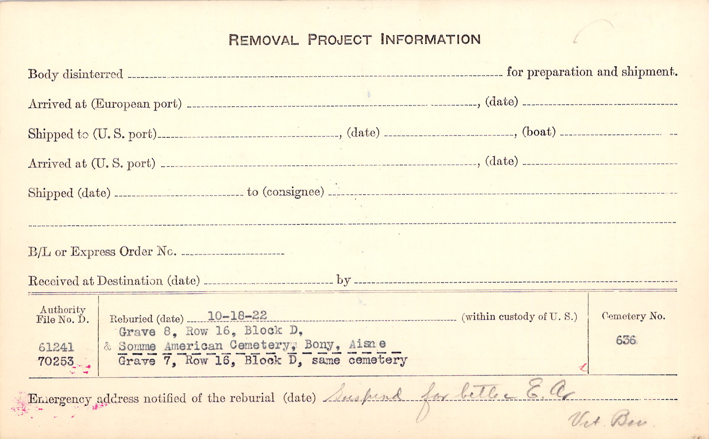 Grave 1, Plot C, Amer. Military Cty., Broyes, Oise