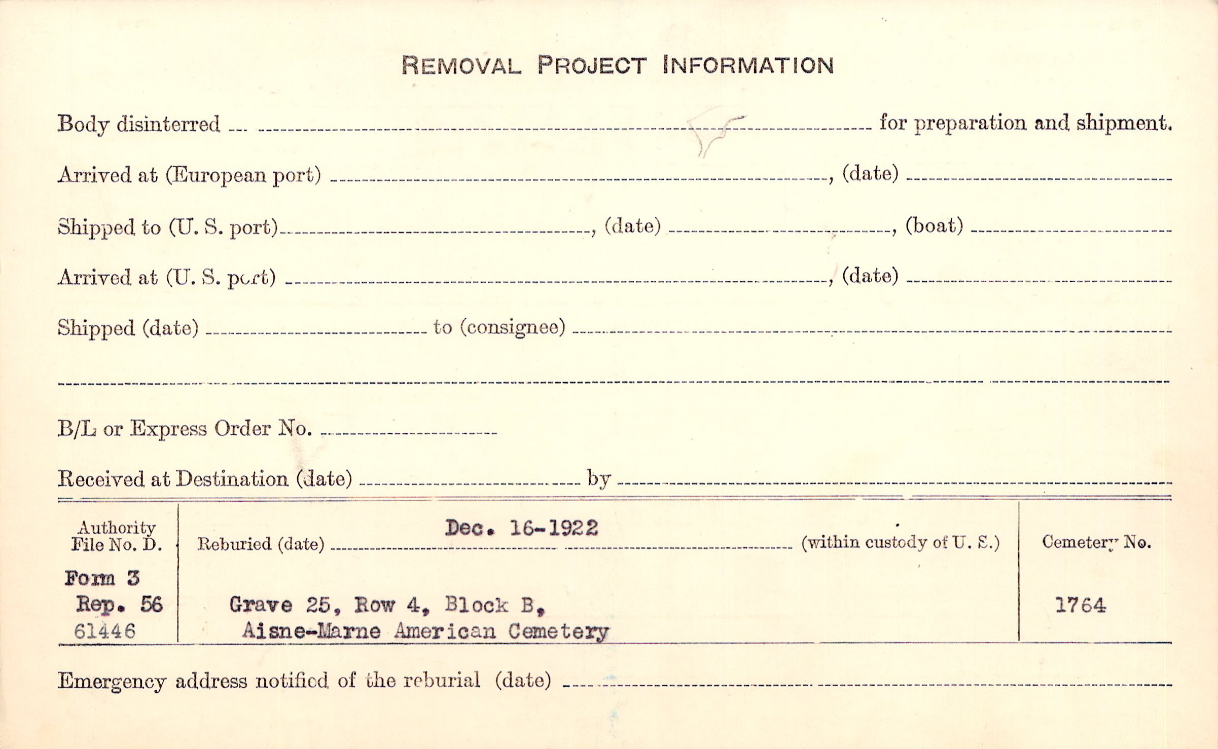 Grave #105, Amer. Cty., Juilly, Seine & Marne