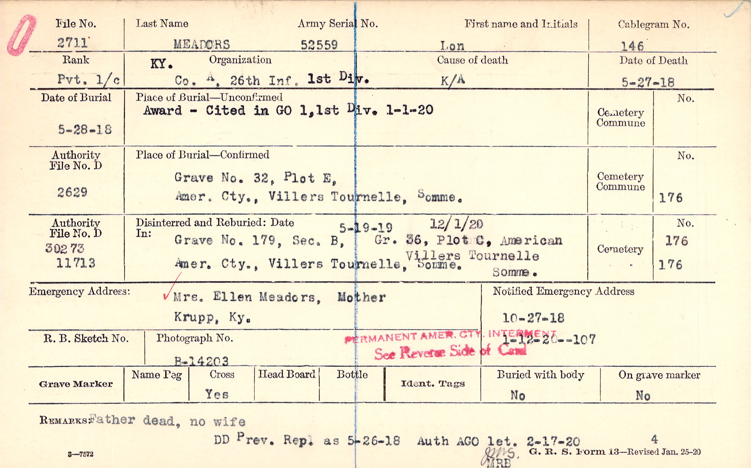 Grave 32, Plot E, Amer. Cty., Villers Tournelle, Somme,