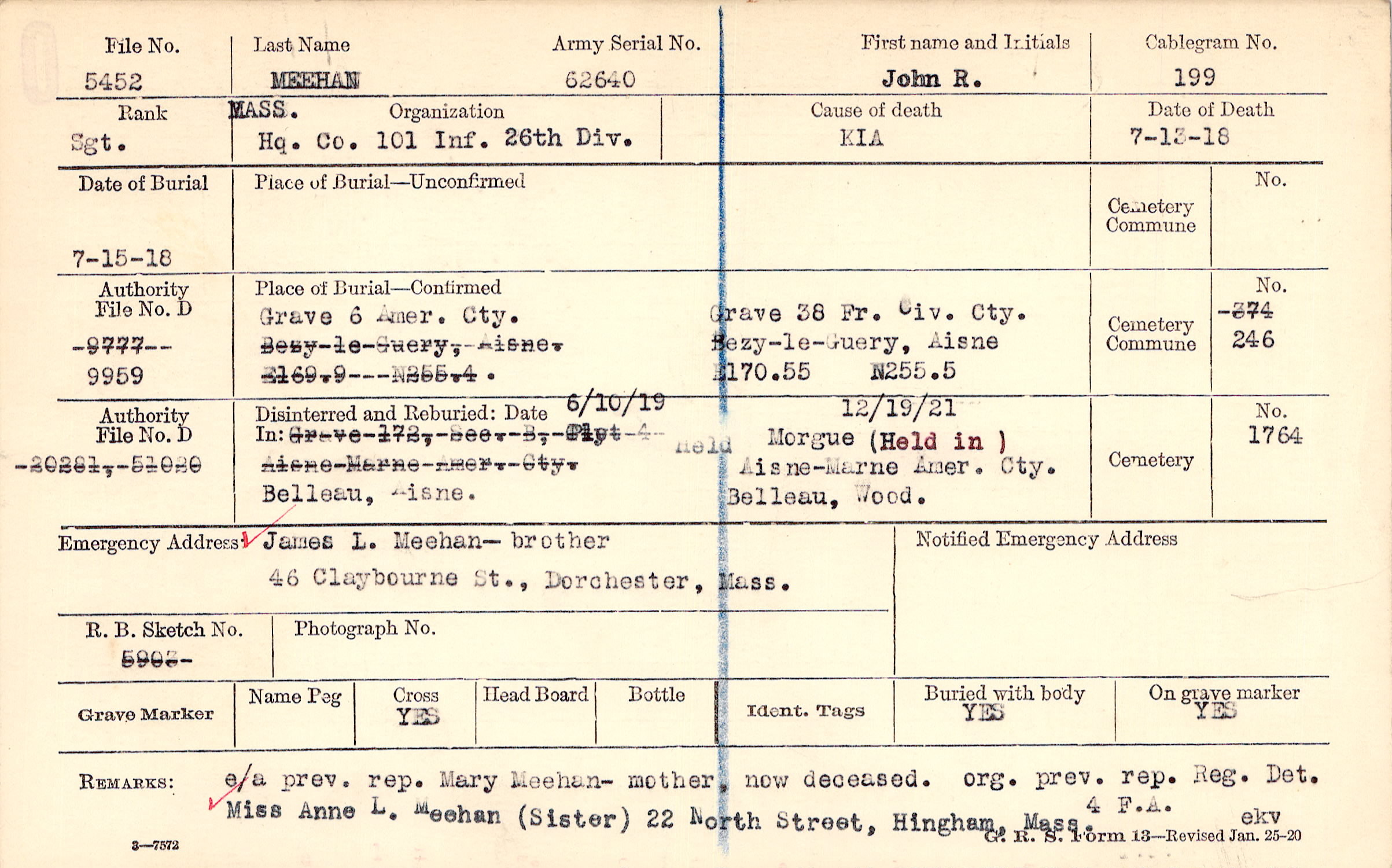James L. Meehan, - brother, 46 Claybourne St., Dorchester, Mass.