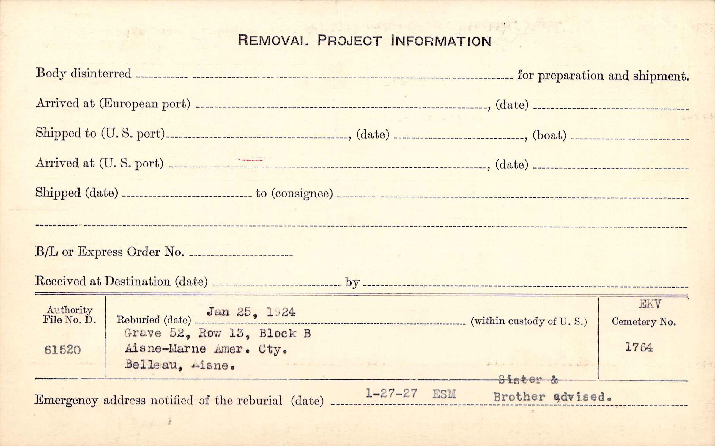 | Reburied (date): |