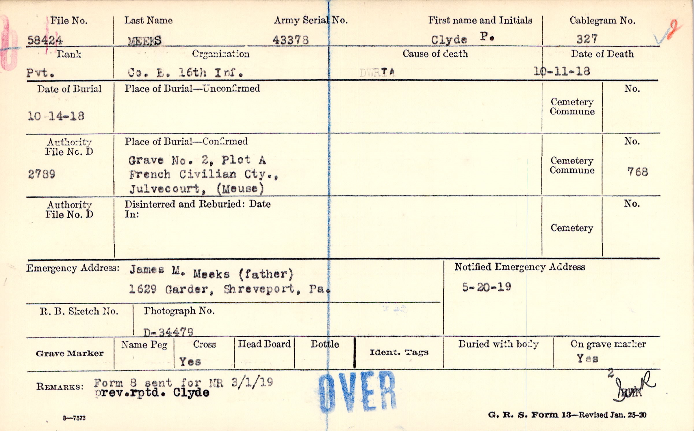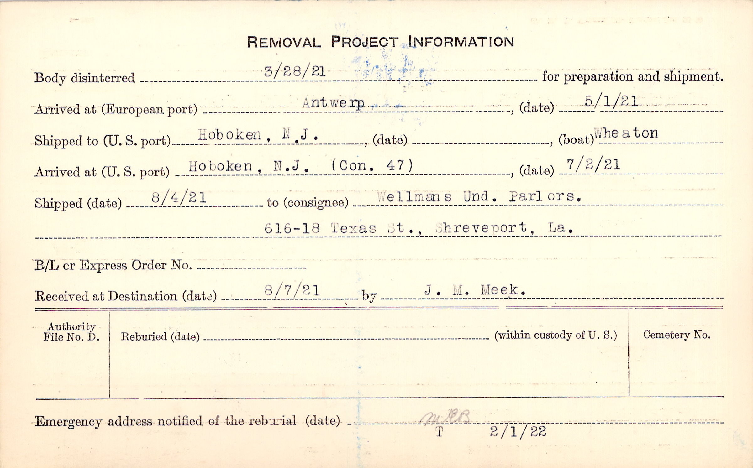 James M. Meeks (father), 1629 Garder, Shreveport, Pa.