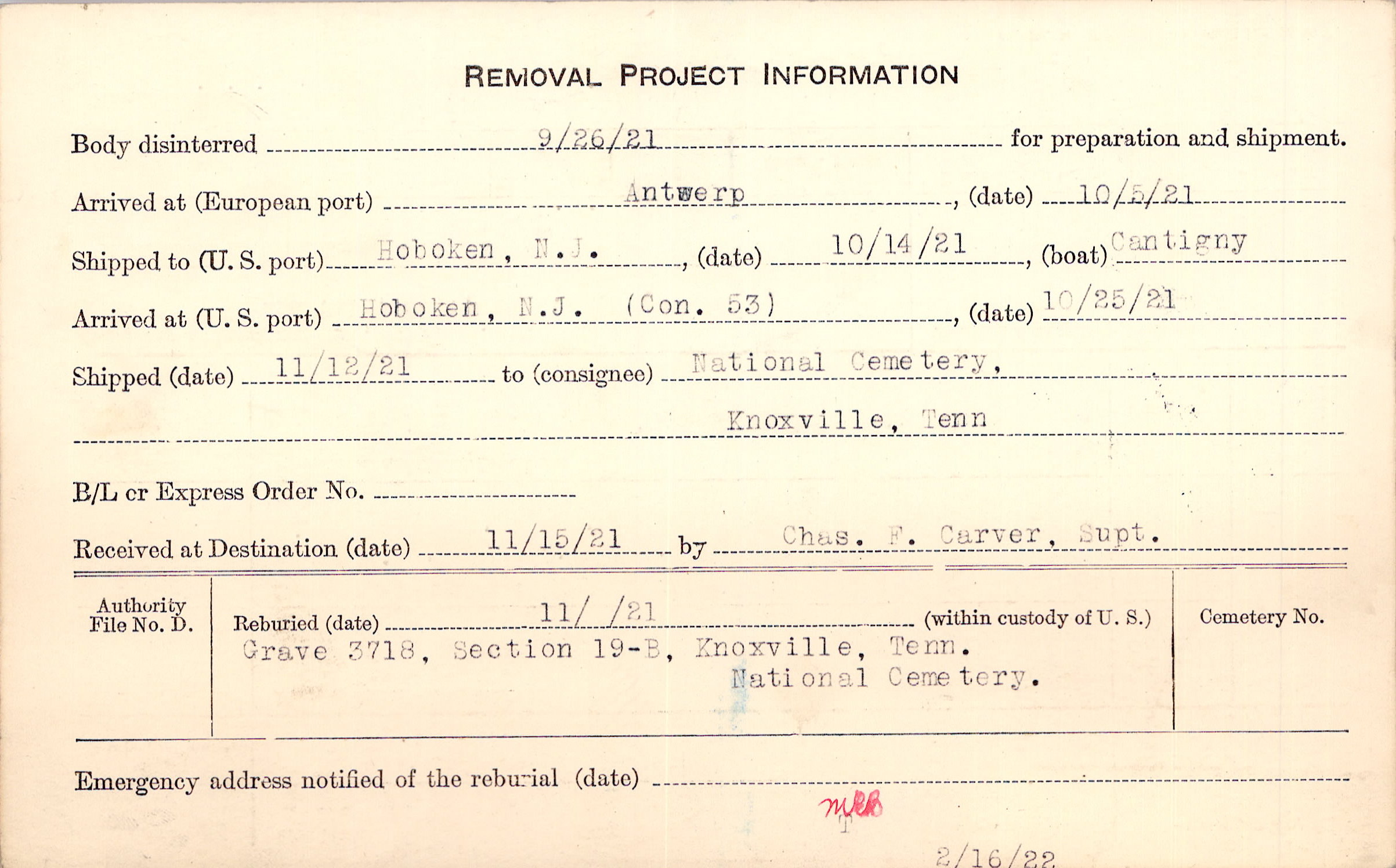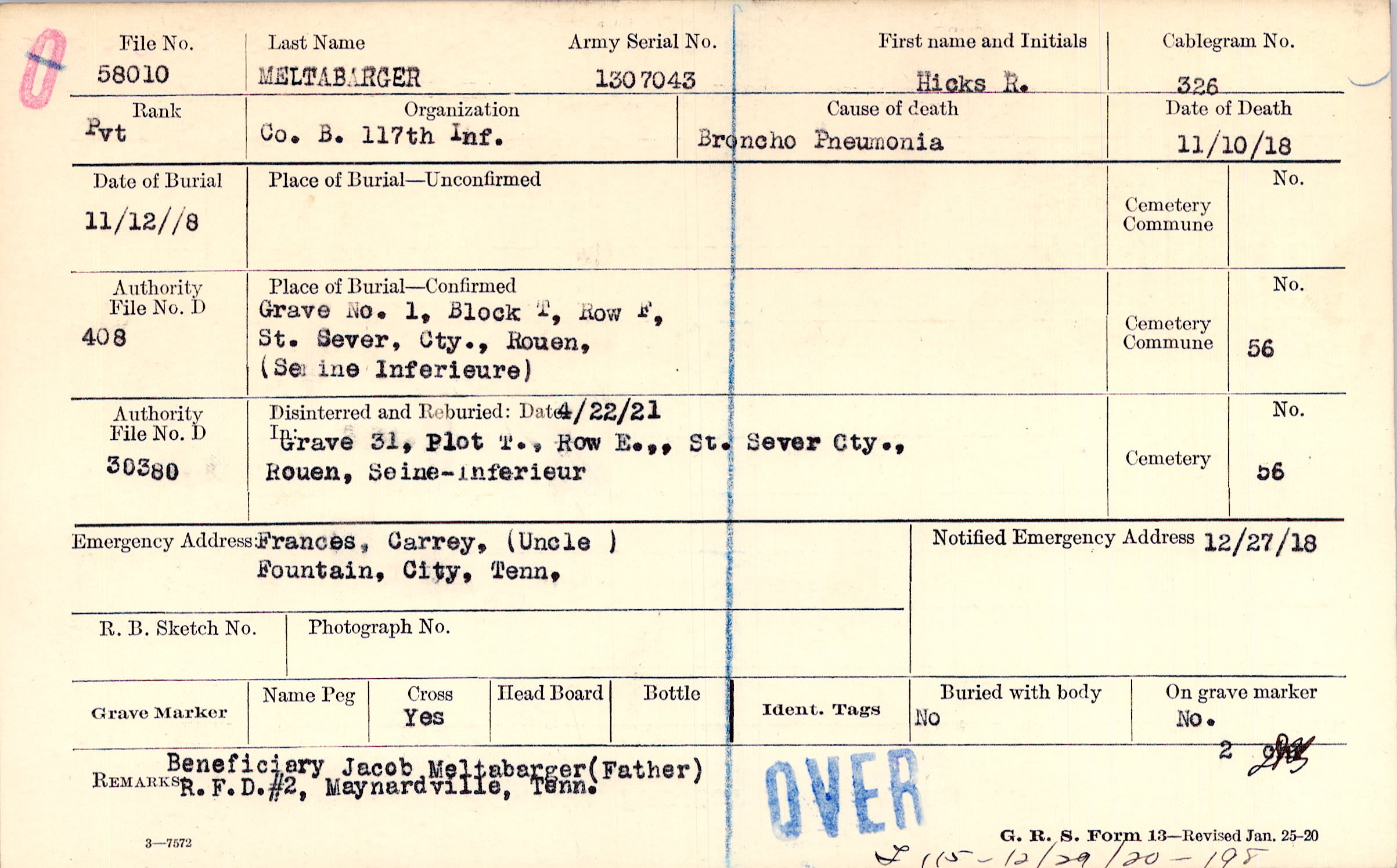 Grave 1, Block T, Row F, St. Sever, Cty., Rouen, (Seine Inferieure)