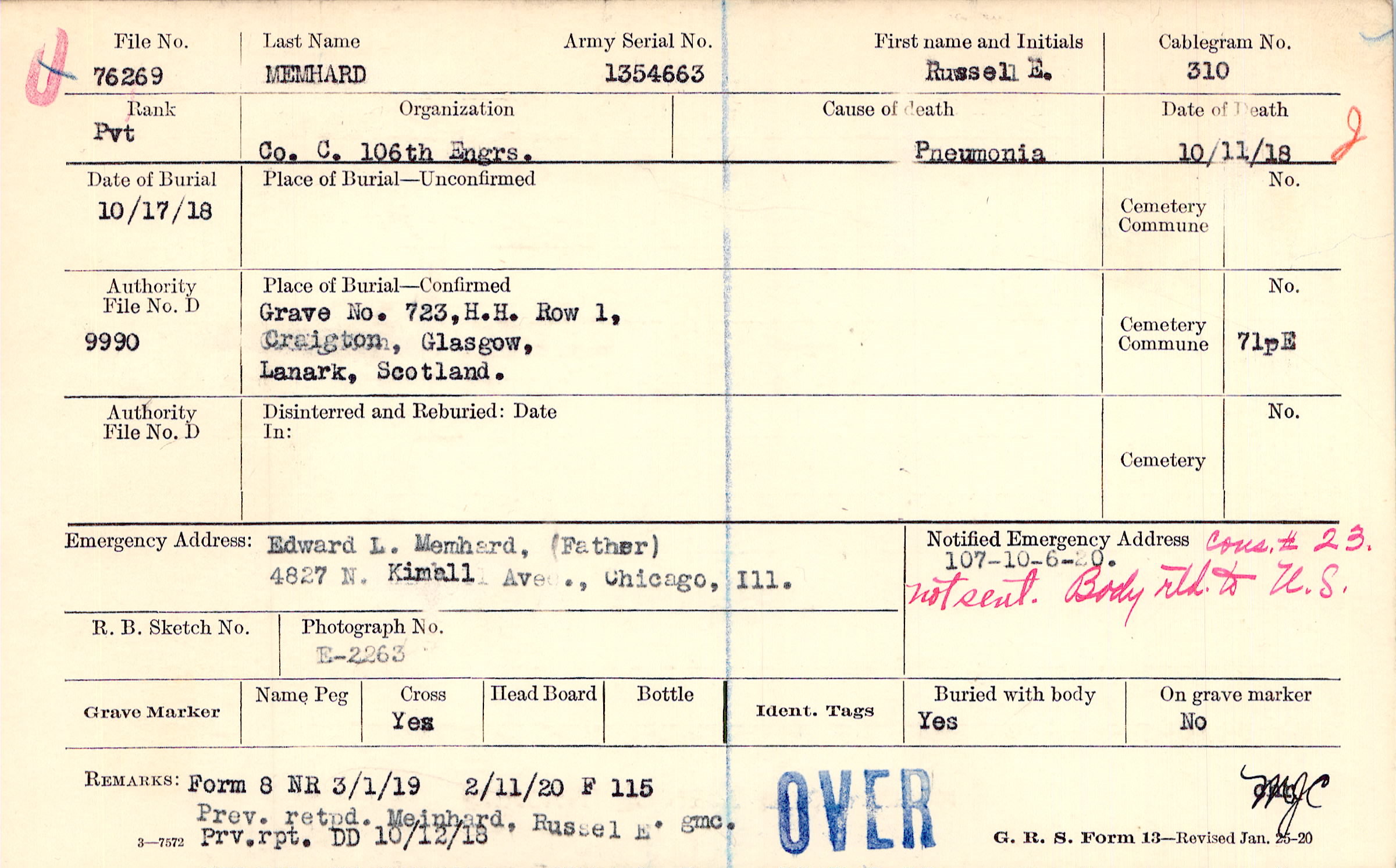 Edward L. Memhard, (Father), 4827 N. Kimall Ave., Chicago, Ill.