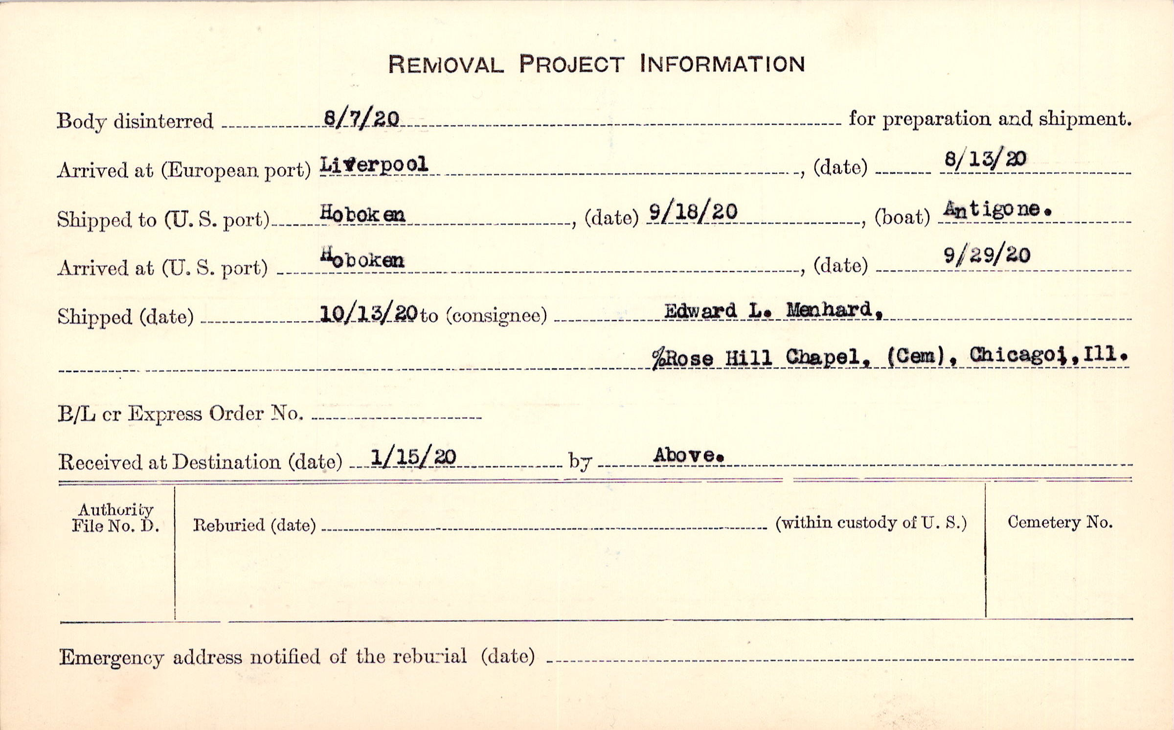 to Edward L. Menhard, % Rose Hill Chapel, (Cem), Chicago, Ill.