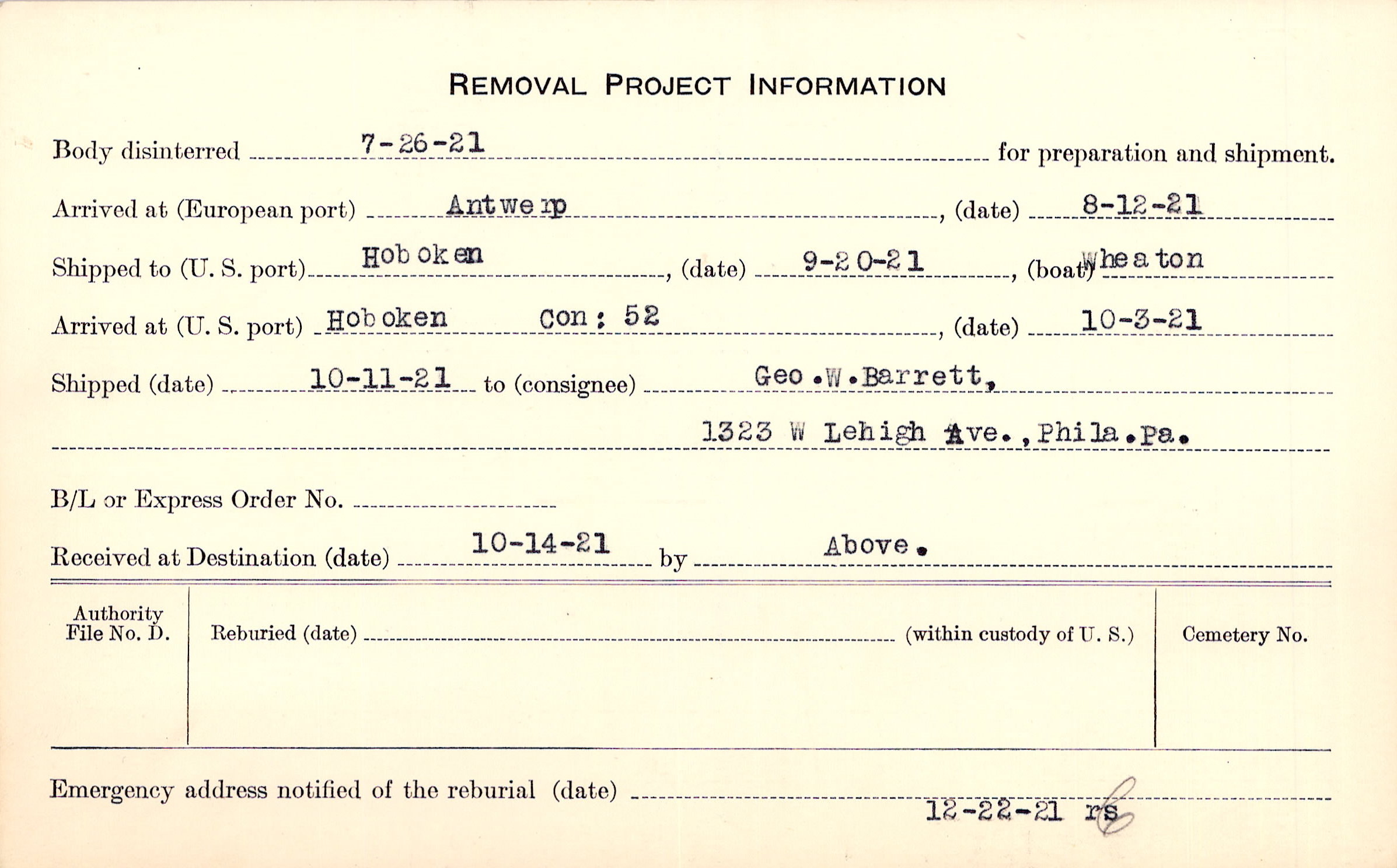 to Geo. W. Barrett, 1323 W Lehigh Ave., Phila., Pa.