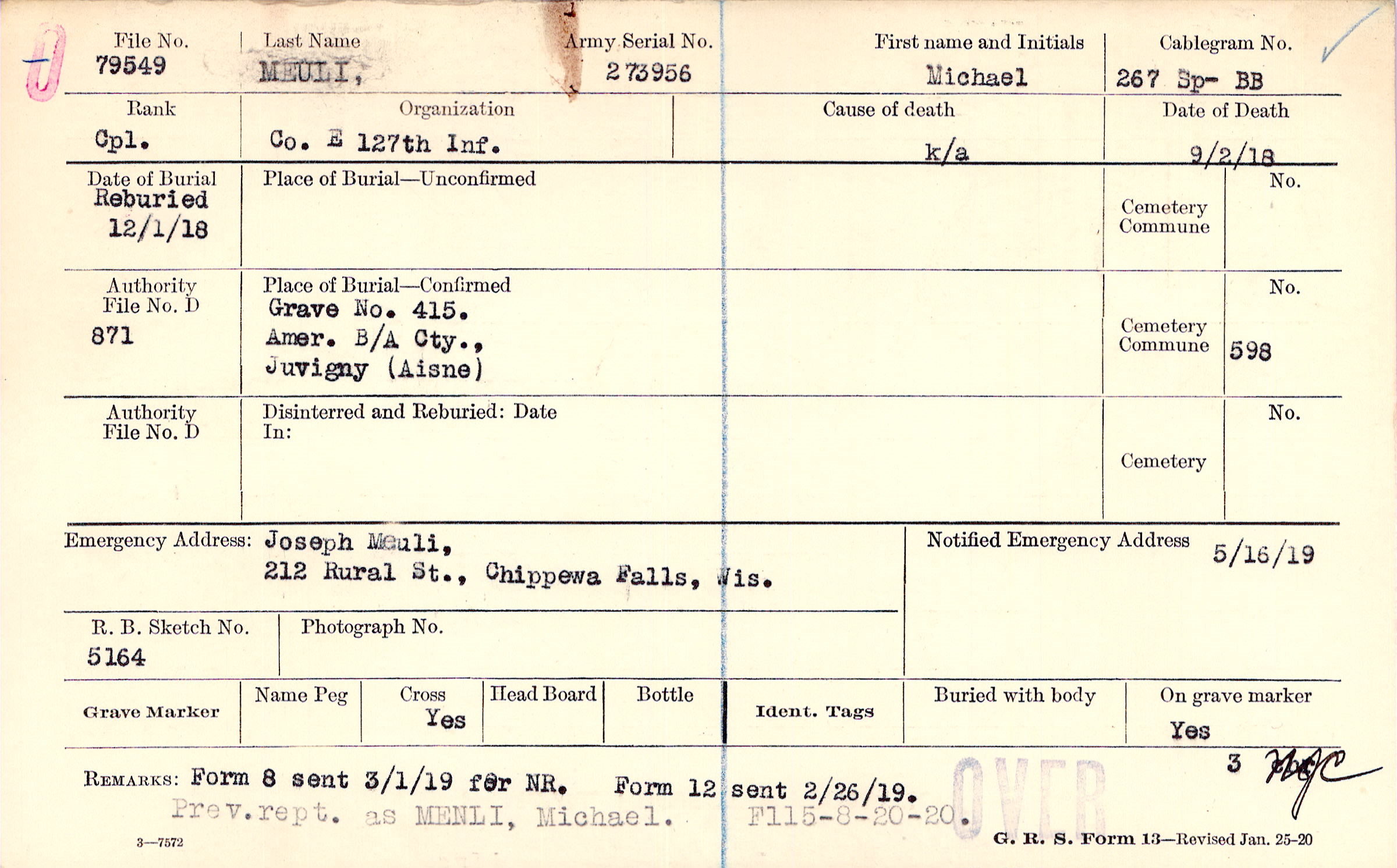 Grave 415, Amer. B/A Cty., Juvigny, Aisne