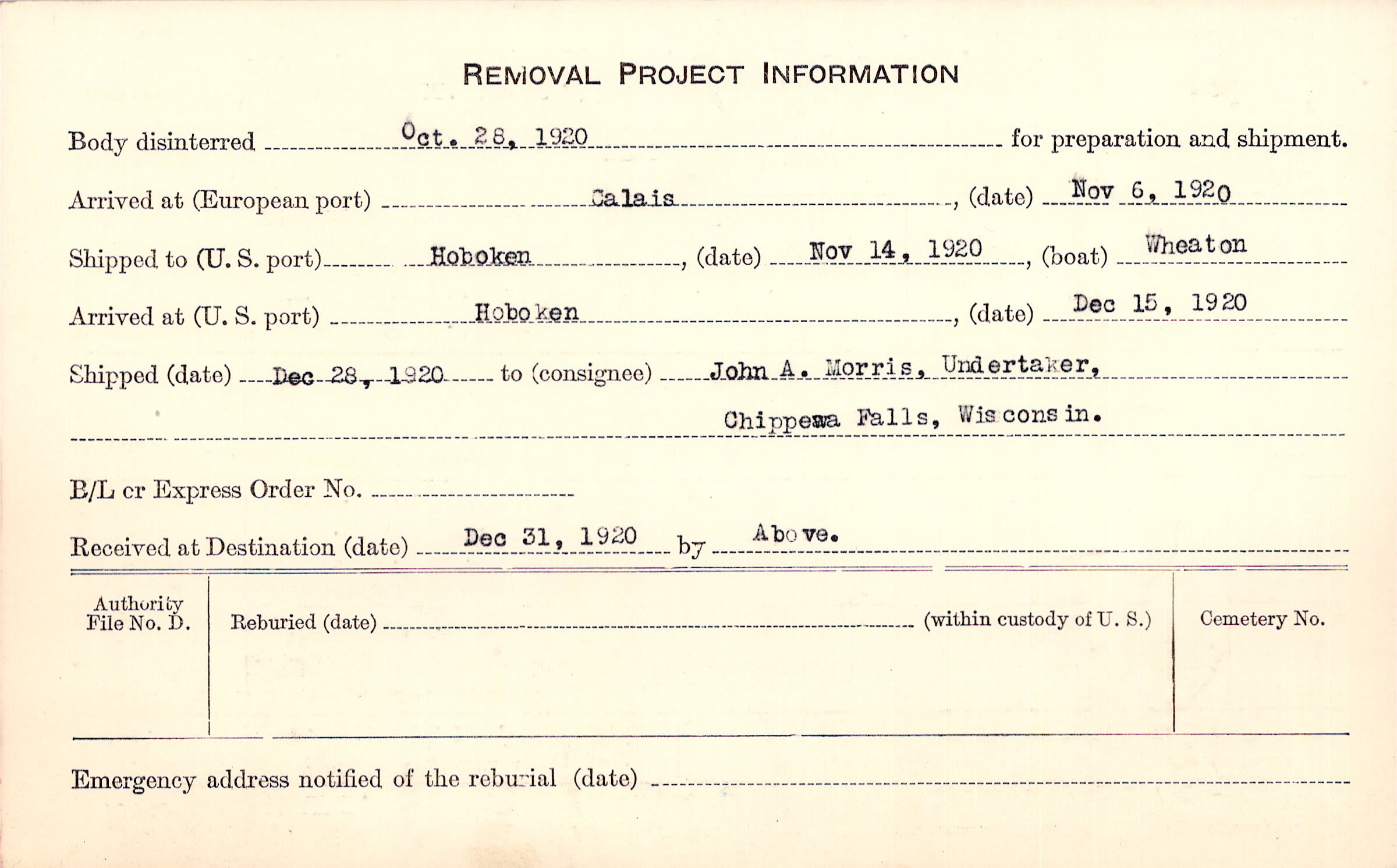 to John A. Morris, Undertaker, Chippewa Falls, Wisconsin