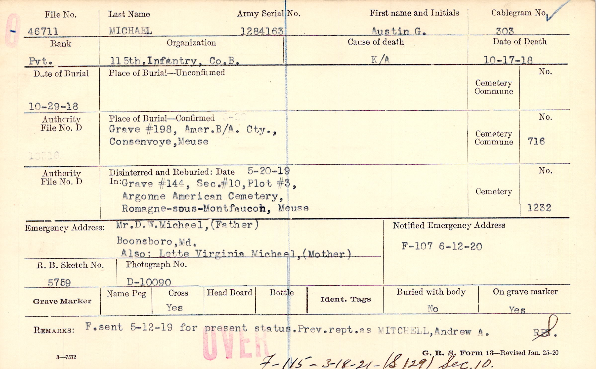 Grave #198, Amer. B/A Cty., Consenvoye, Meuse