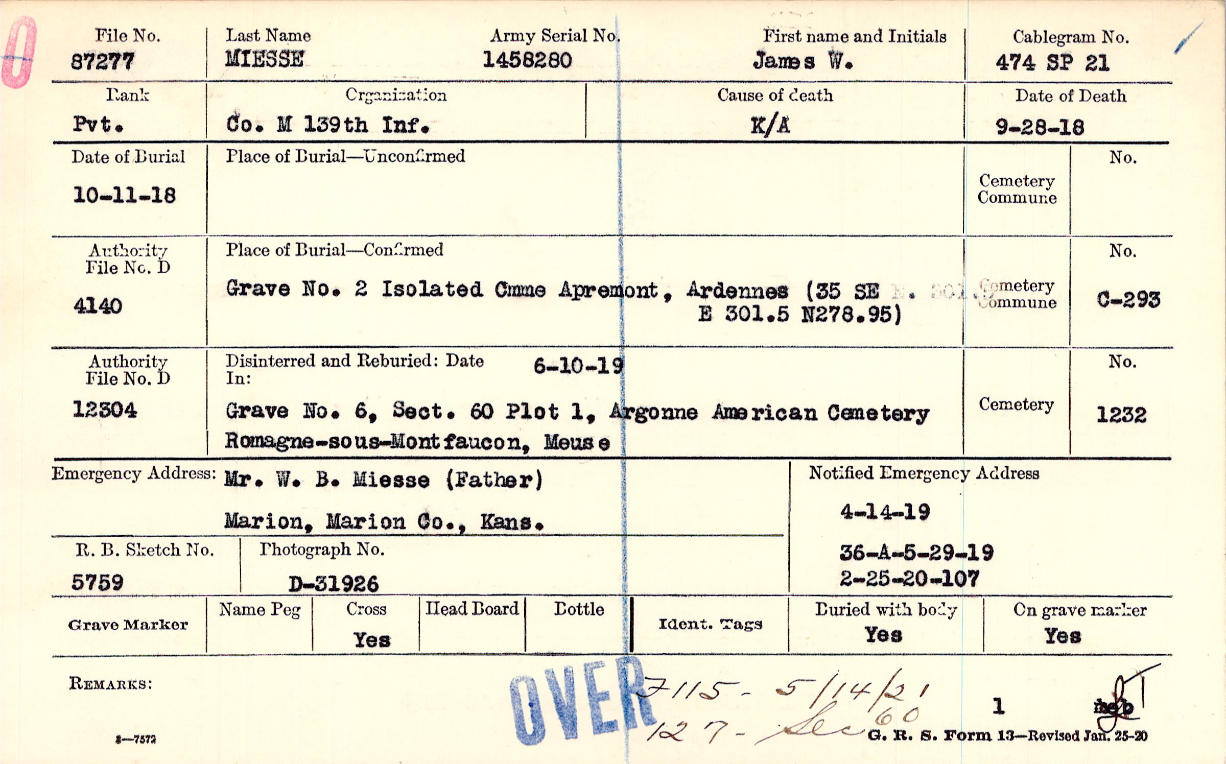 4/14/1919, Form 36A: 5/29/1919, Form 107: 2/25/1920