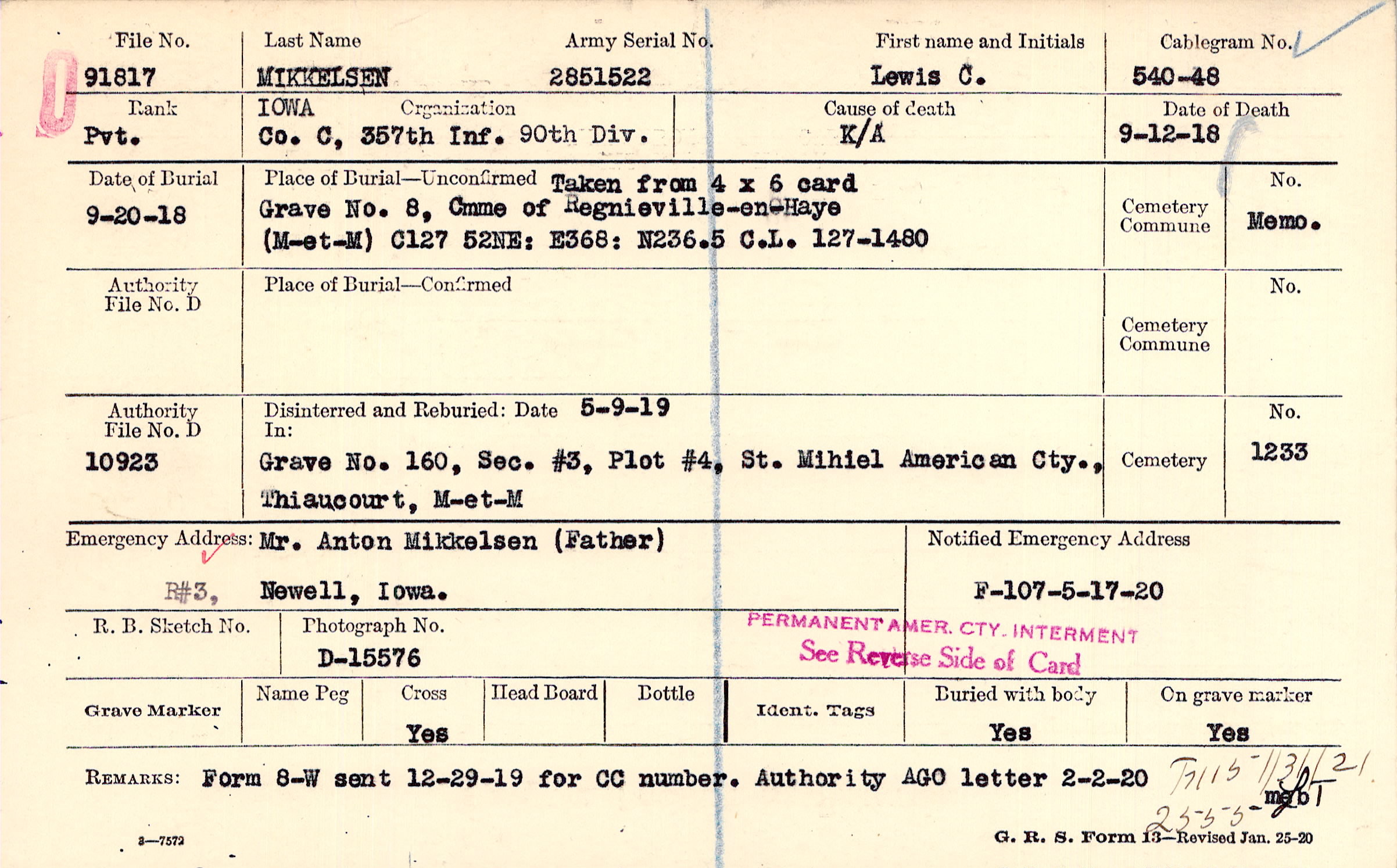 Grave No. 8, Cmme of Regnieville-en-Haye, M-et-M, C127, 52NE, C.L. 127-1480