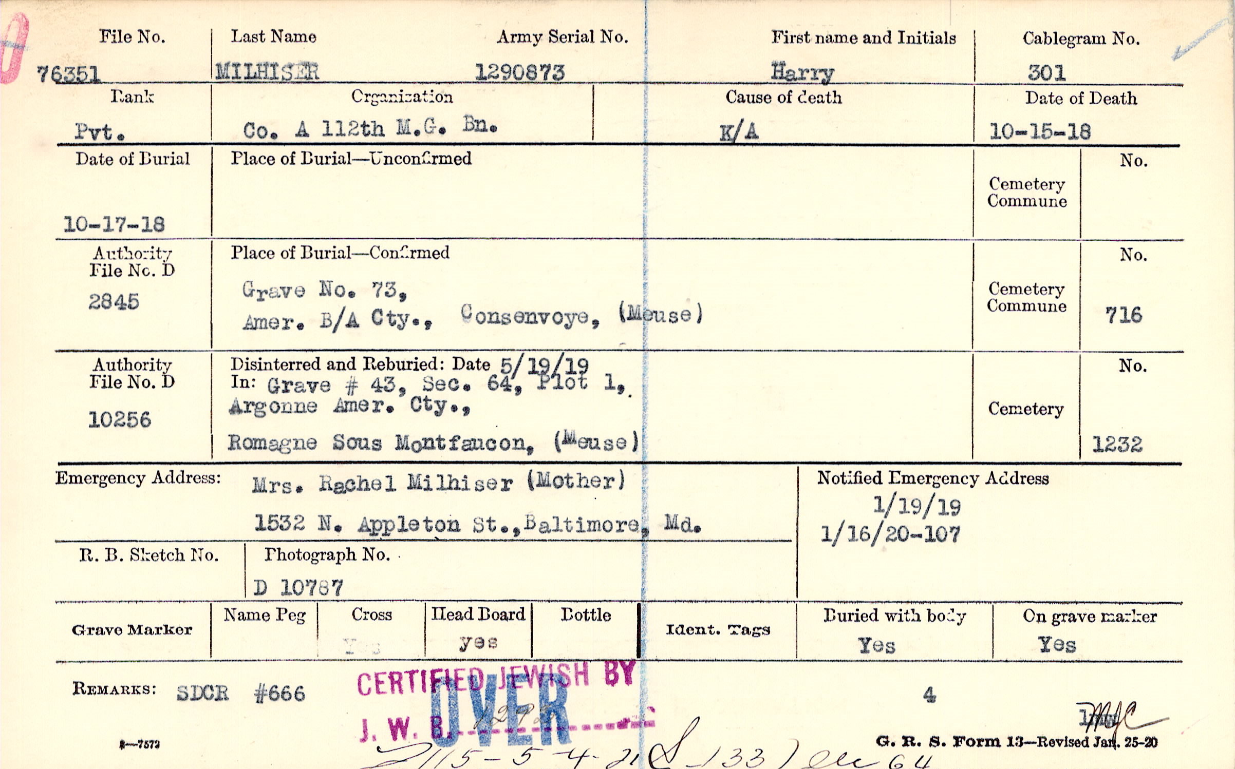 Grave 73, Amer. B/A Cty., Consenvoye, Meuse