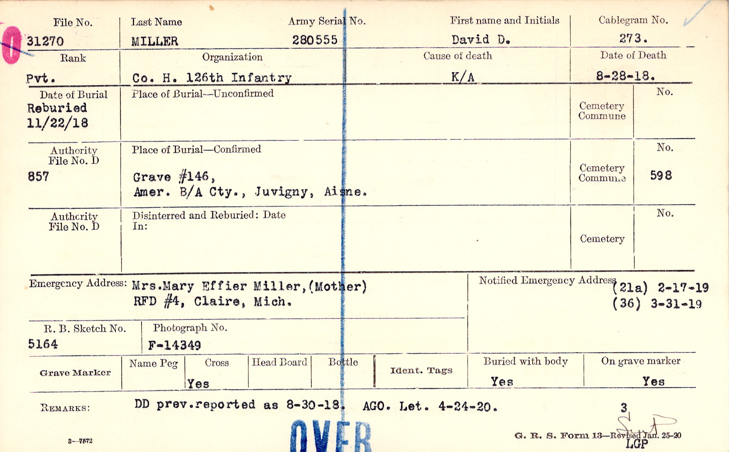 Grave #146, Amer. B/A Cty., Juvigny, Aisne.