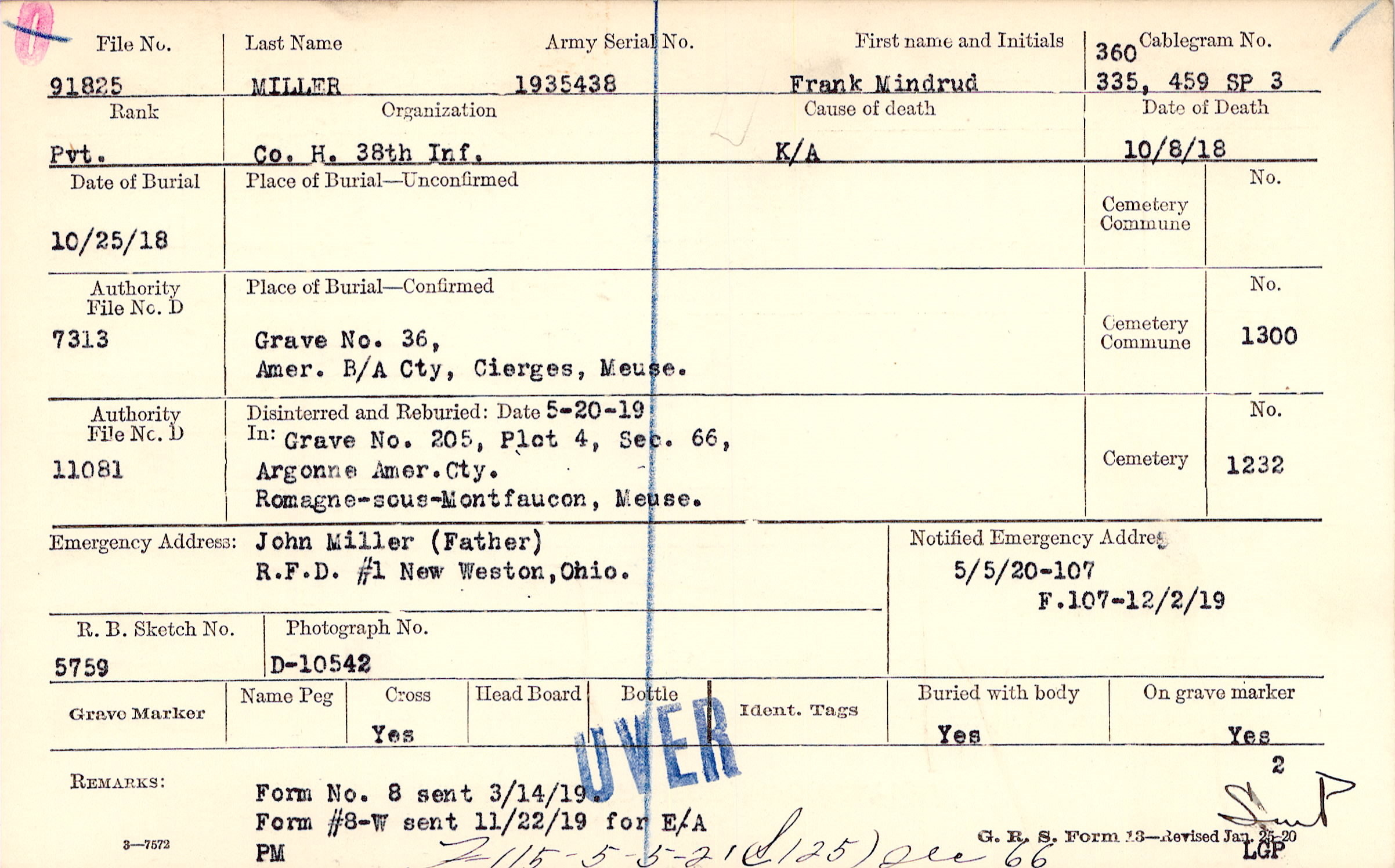 Grave 36, Amer. B/A Cty., Cierges, Meuse.