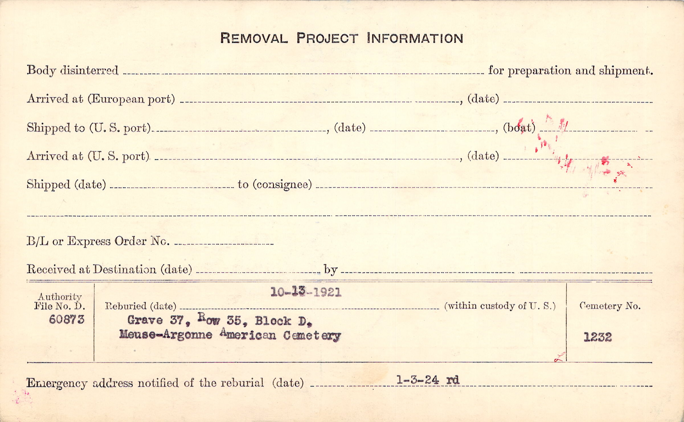 | Reburied (date): |