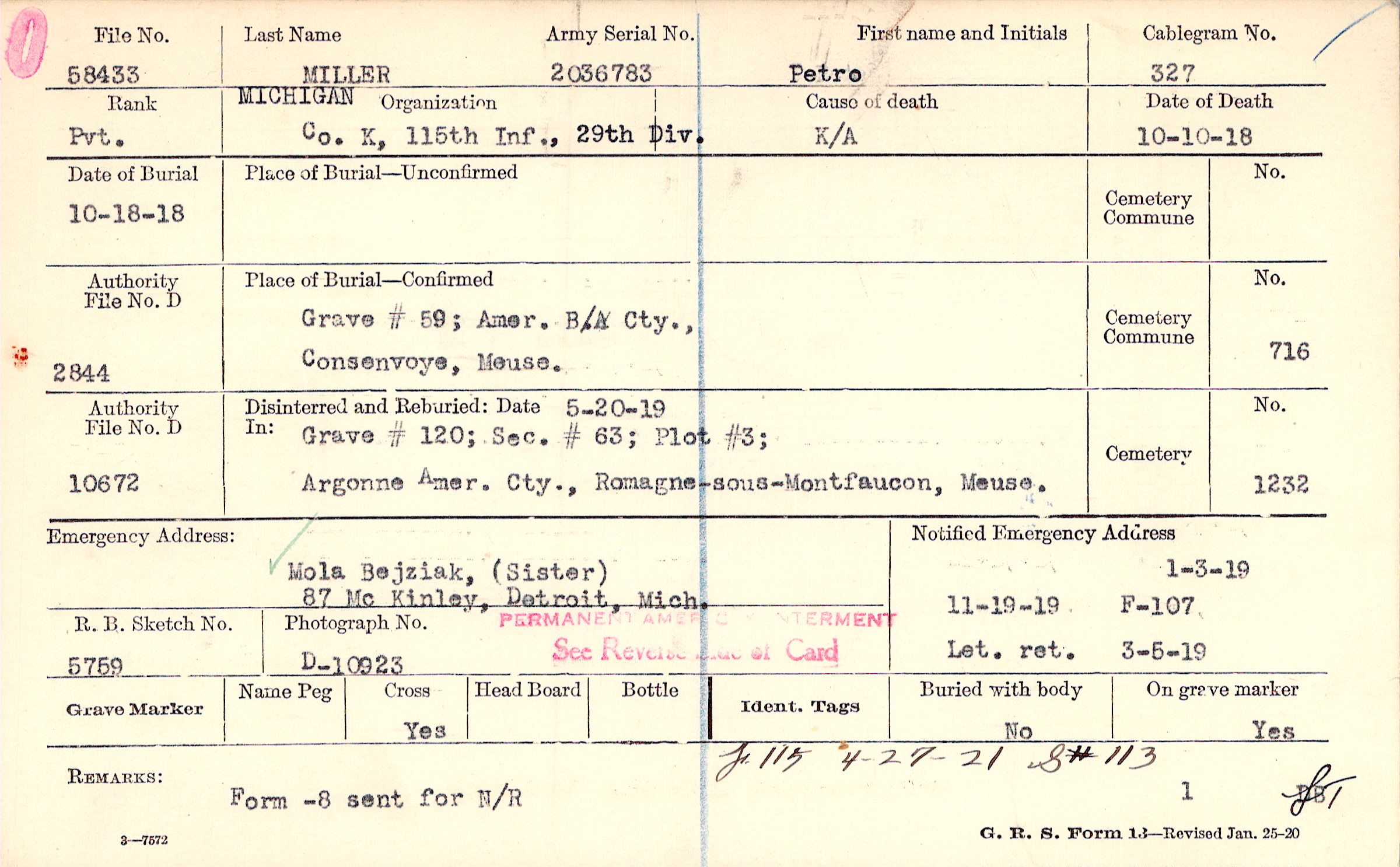 Form -8 sent for N/R, F. 115 4-27-21 S# 113
