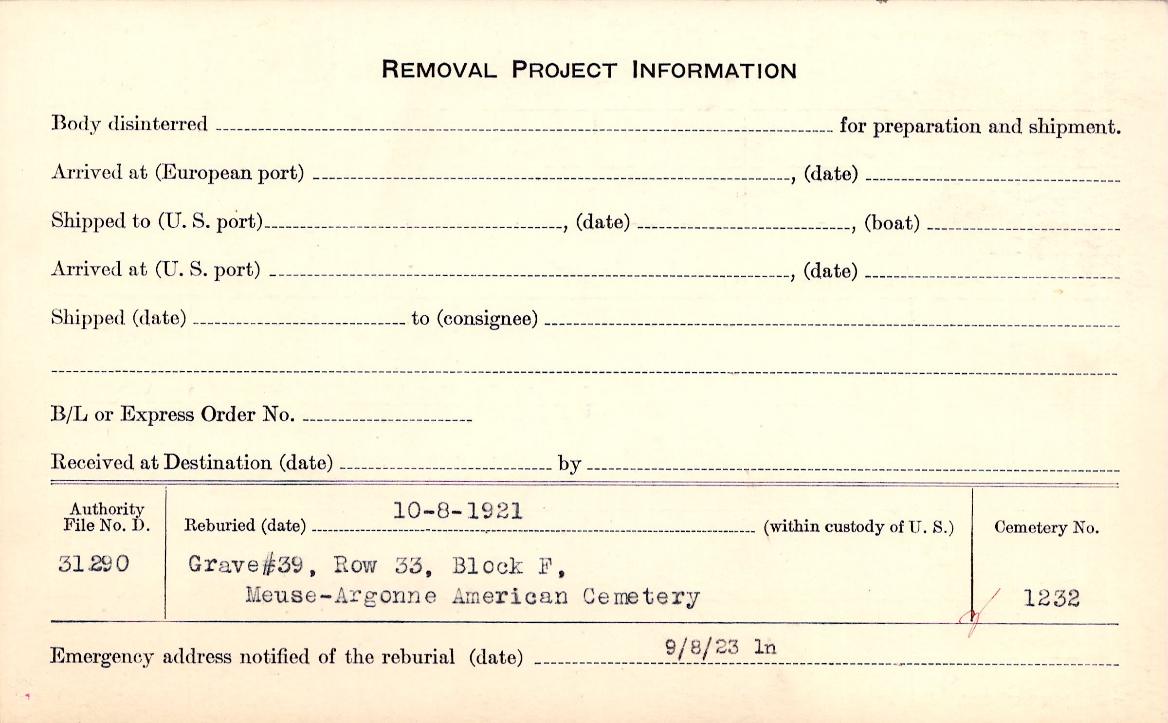 | Permanent Burial in Foreign Cemetery |