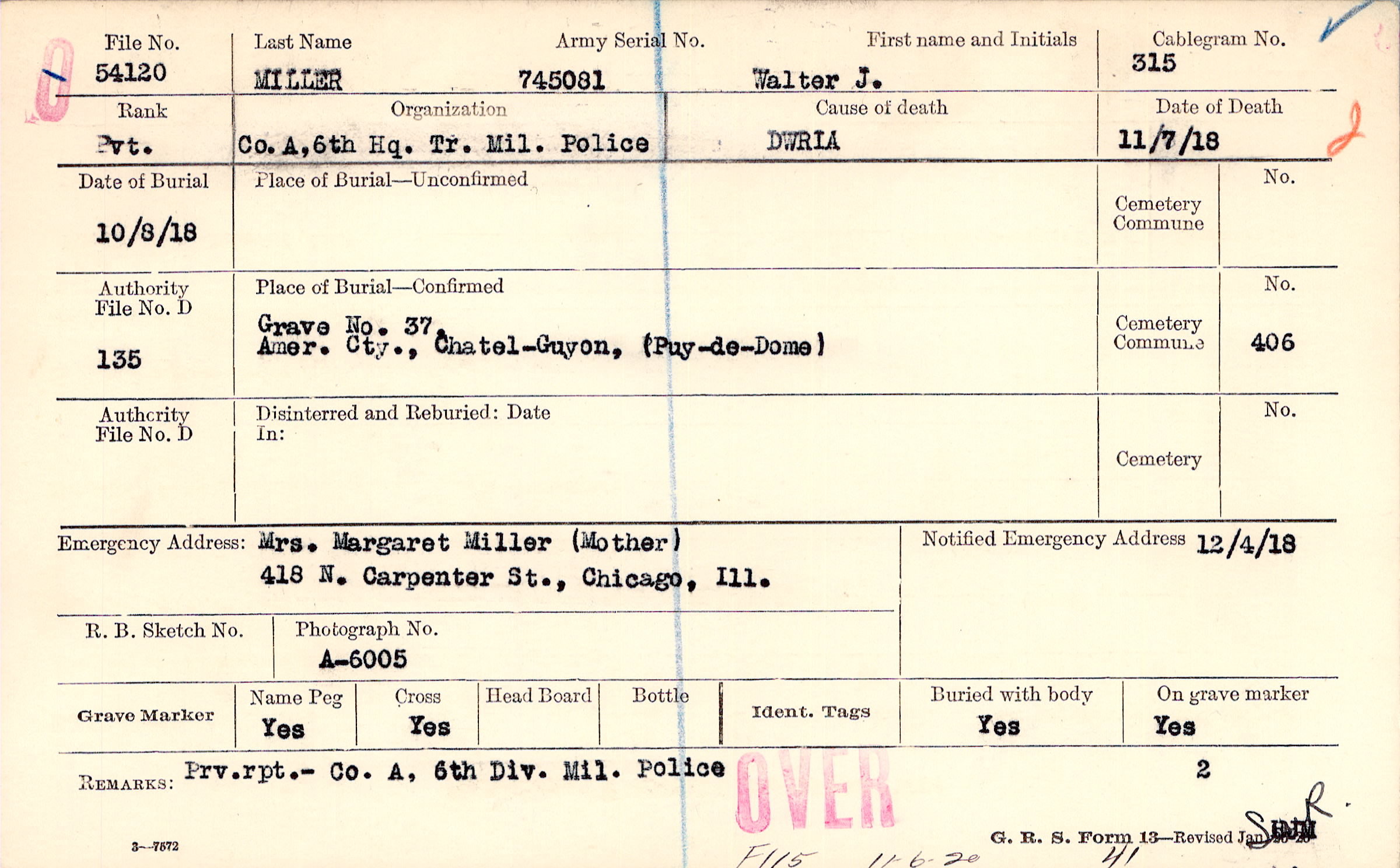 Grave 37, Amer. Cty., Chatel-Guyon, Puy-de-Dome