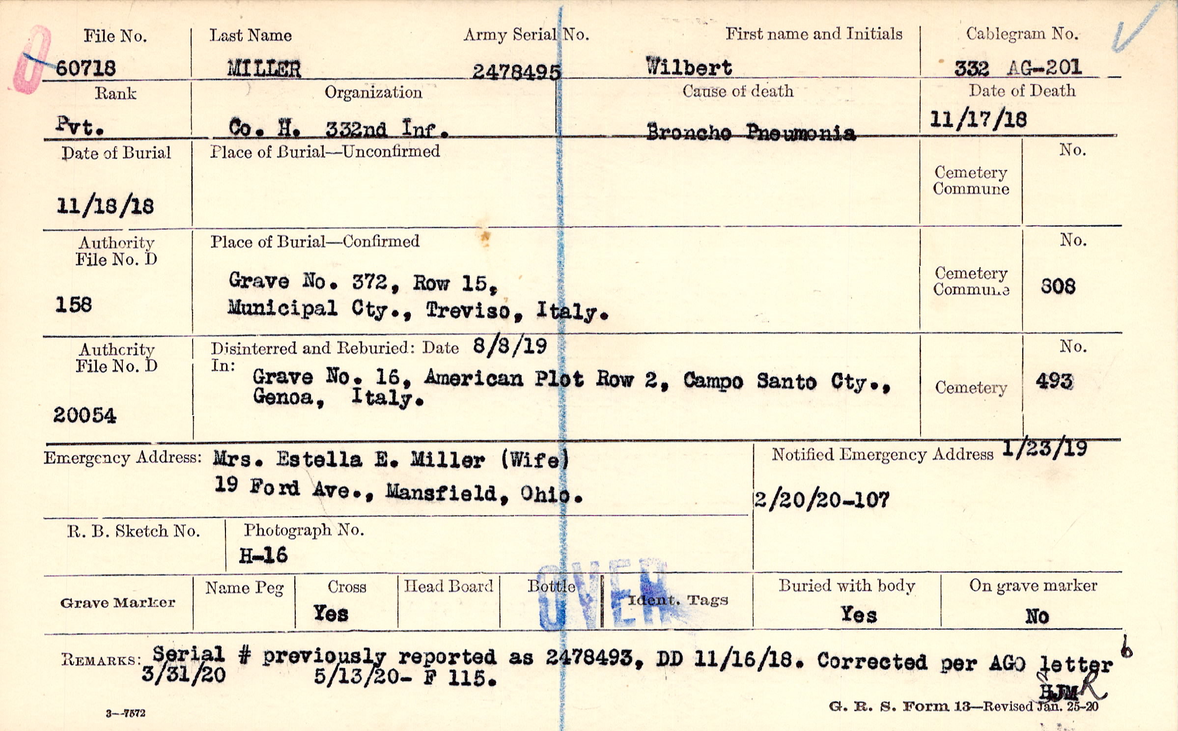 Grave 372, Row 15, Municipal Cty., Treviso, Italy.