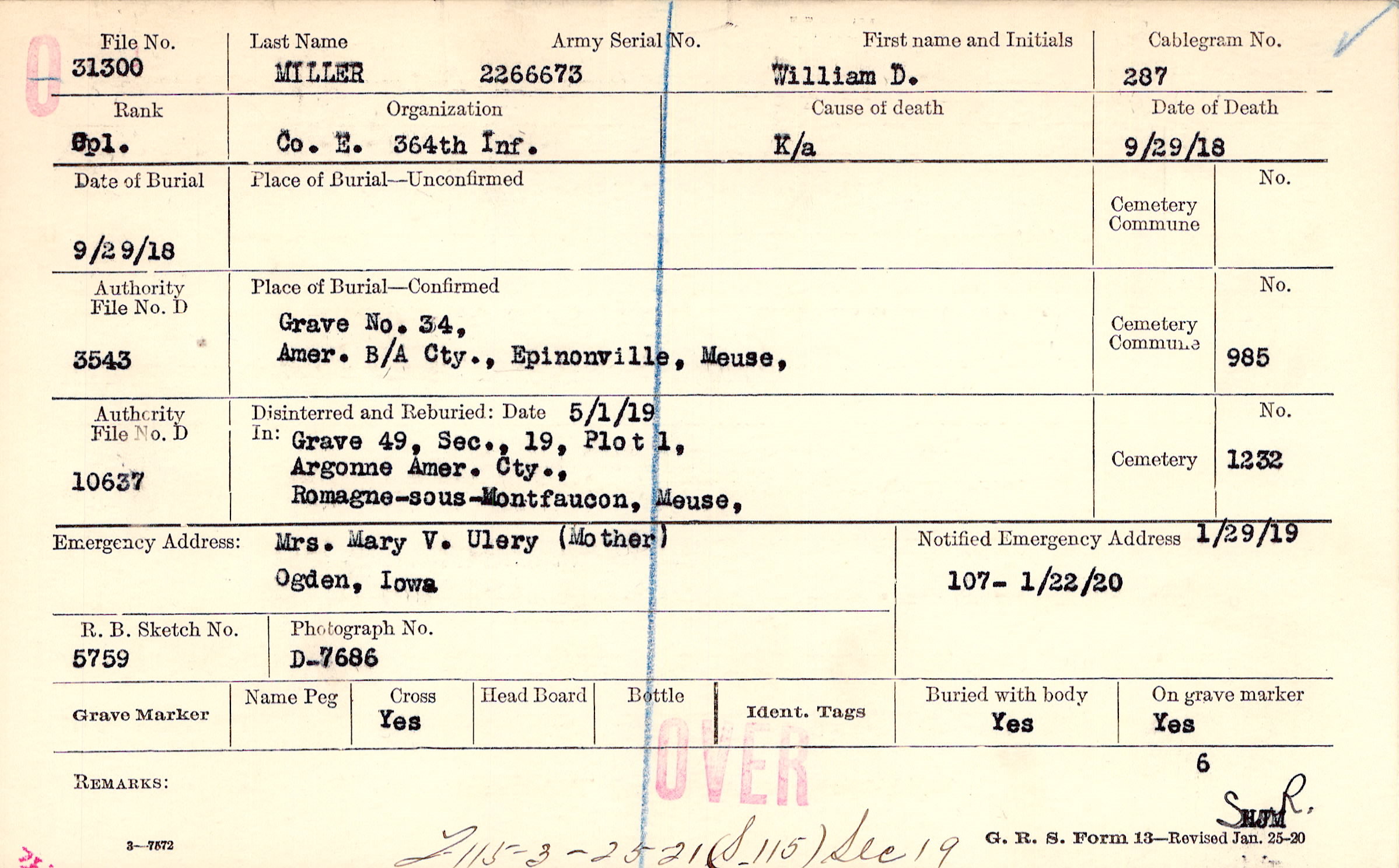 Grave 34, Amer. B/A Cty. , Epinonville, Meuse,