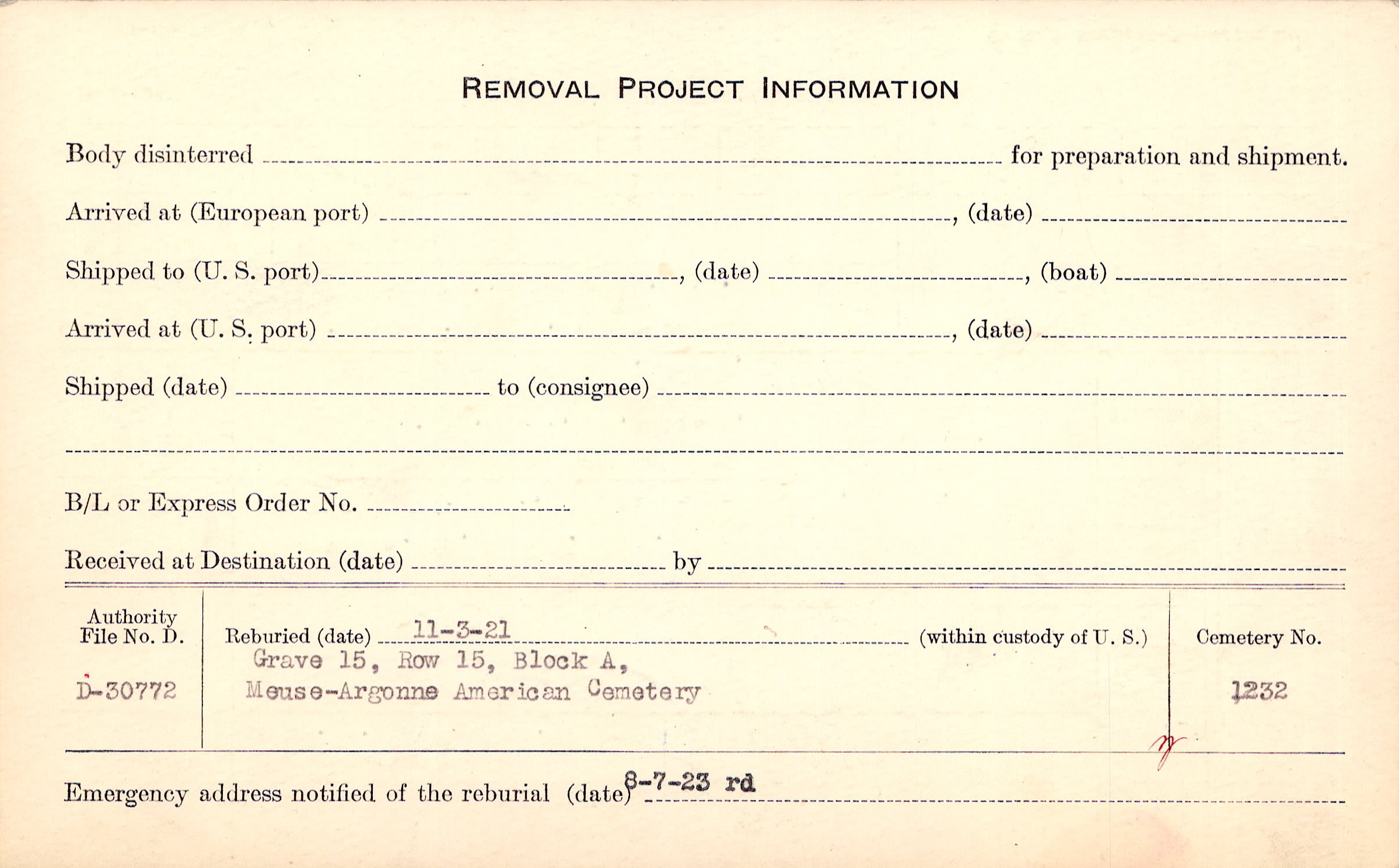 | Permanent Burial in Foreign Cemetery |