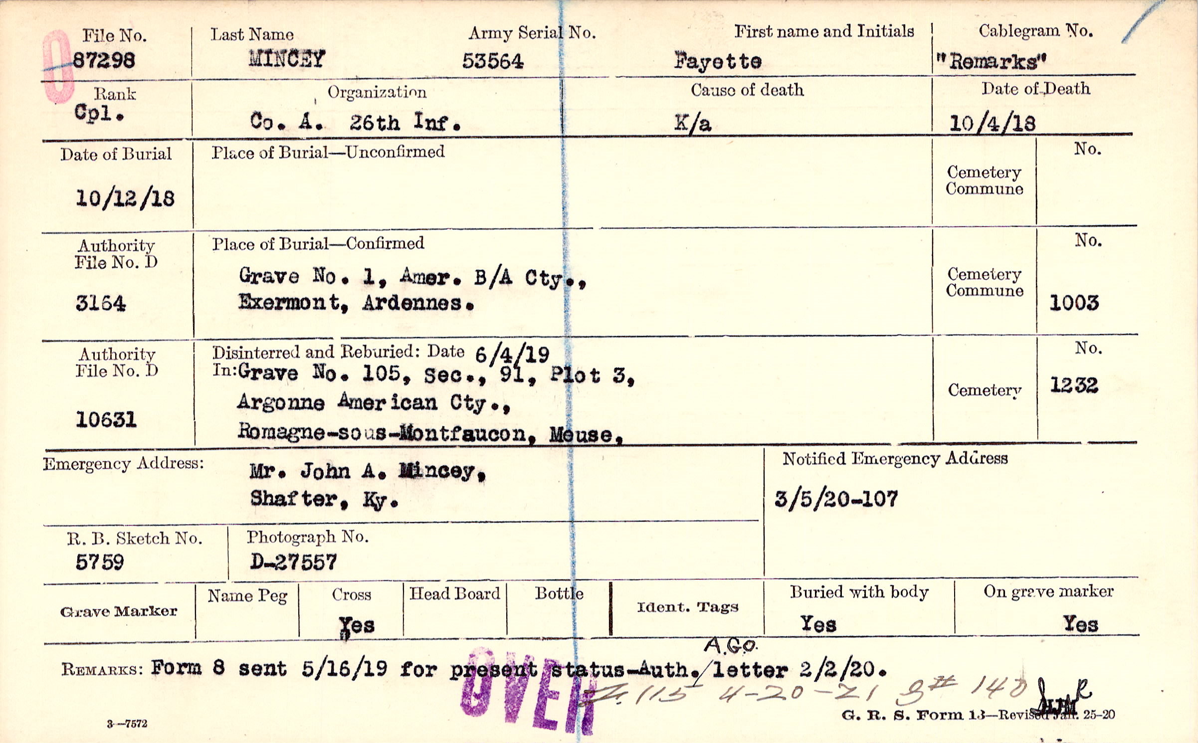 Grave 1, Amer. B/A Cty., Exermont, Ardennes.