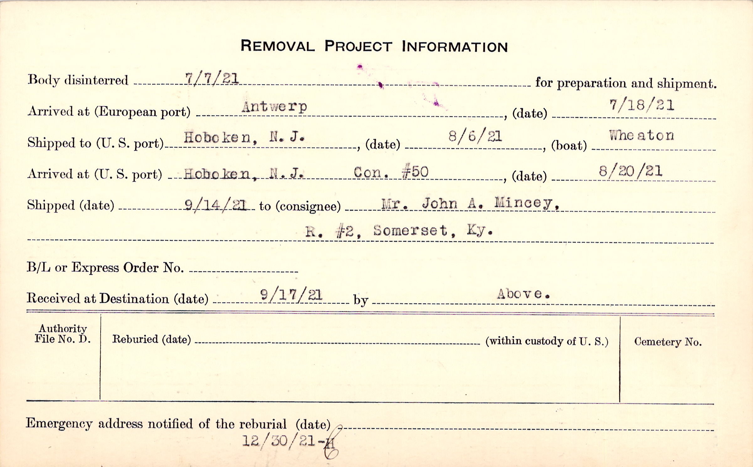 to Mr. John A. Mincey, R. #2, Somerset, Ky.
