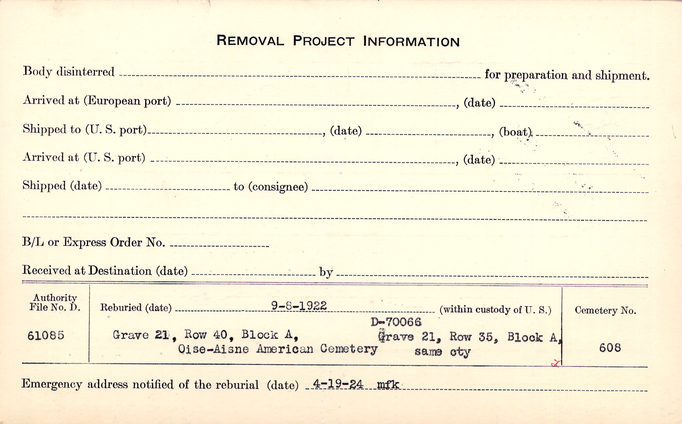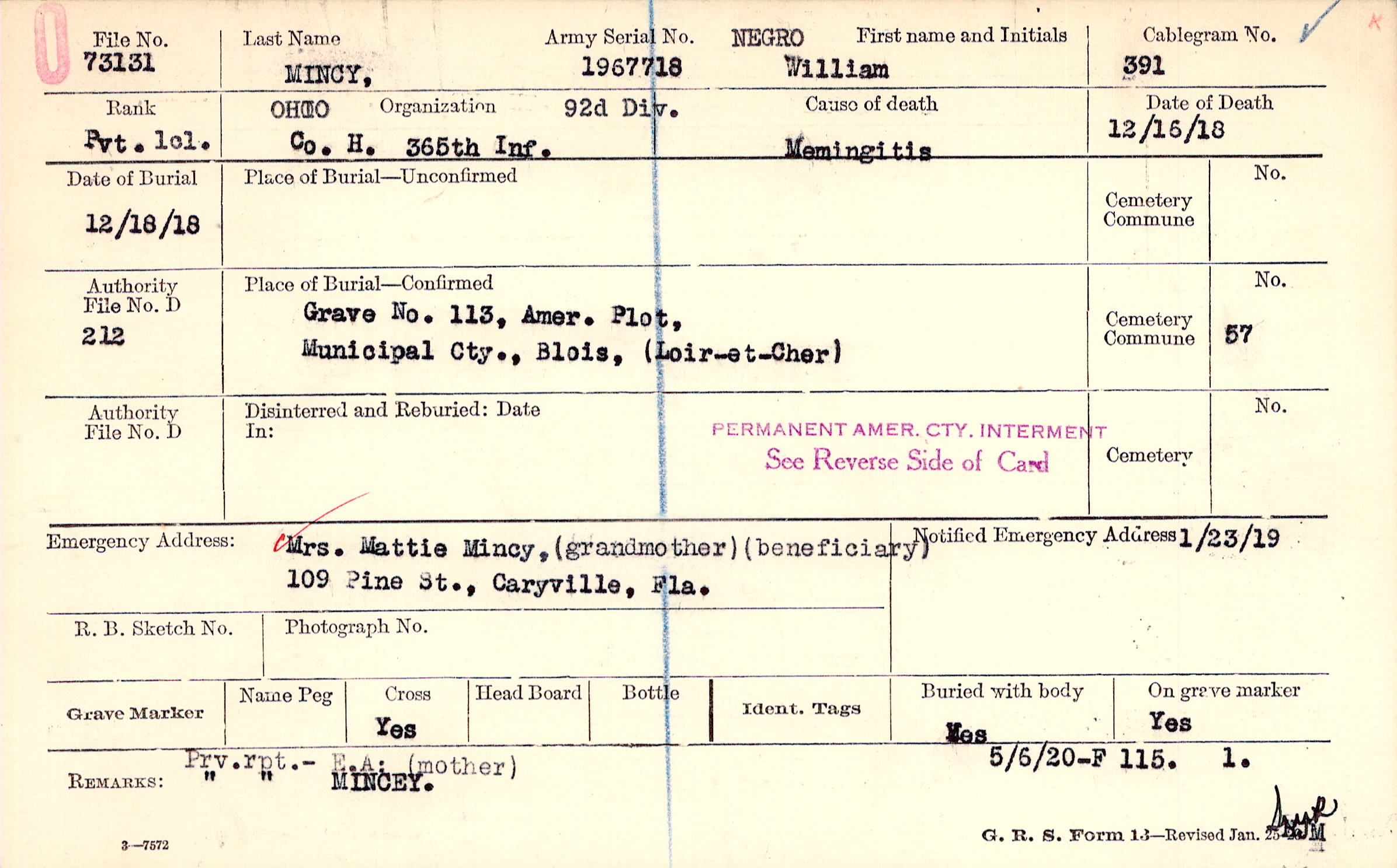 Grave 113, Amer. Plot, Municipal Cty., Blois, (Loir-et-Cher).