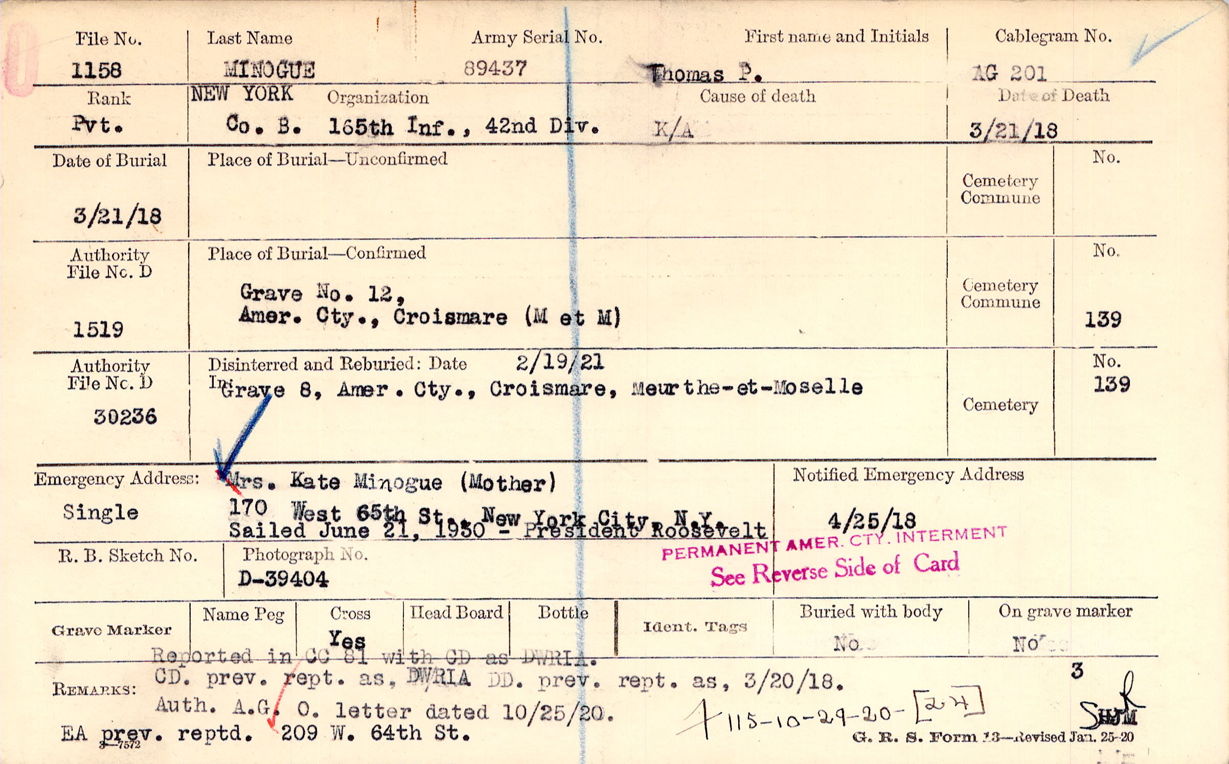 Grave 12, Amer. Cty., Croismare, M et M