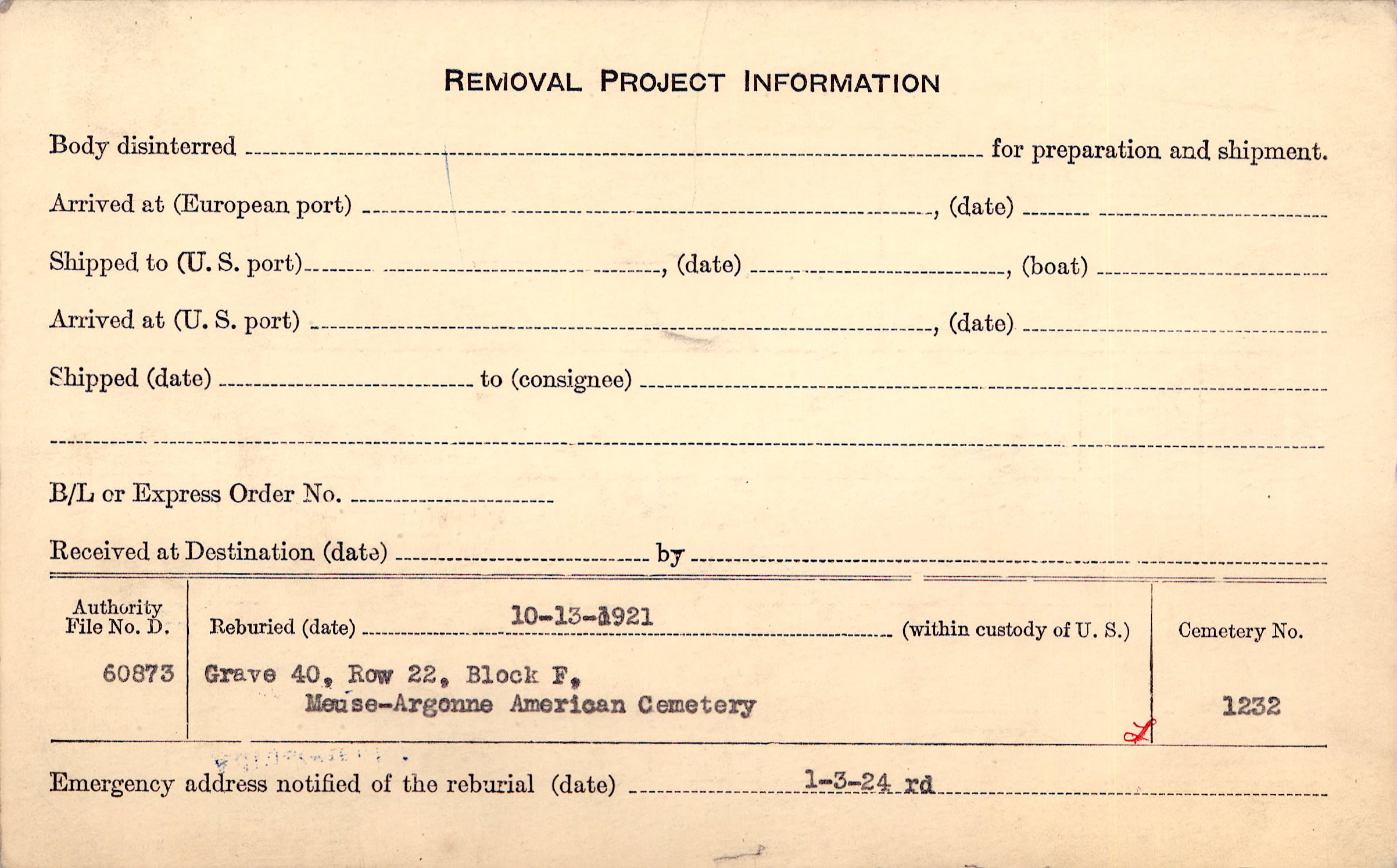 | Permanent Burial in Foreign Cemetery |