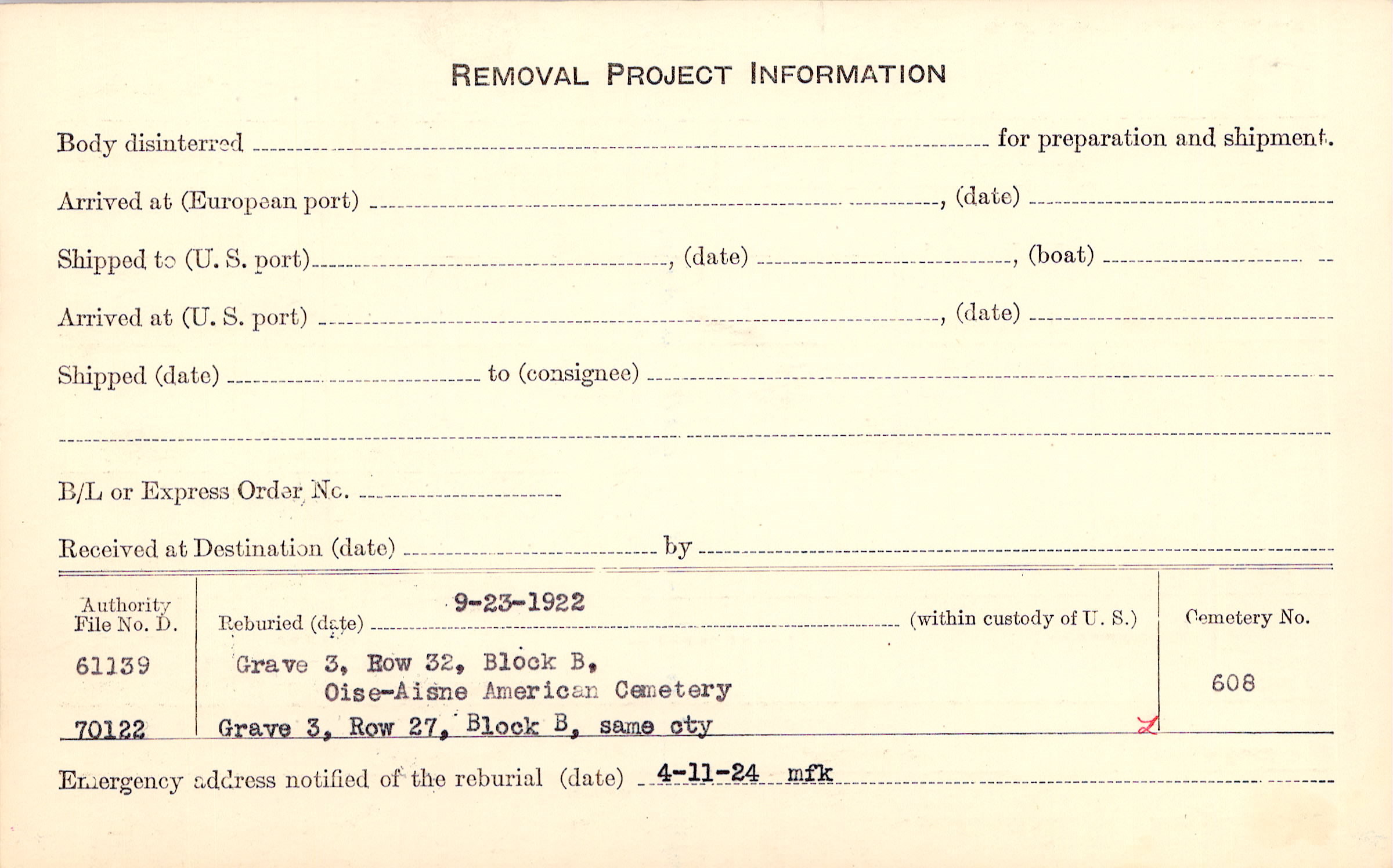 Prior Burial in Foreign Cemetery |