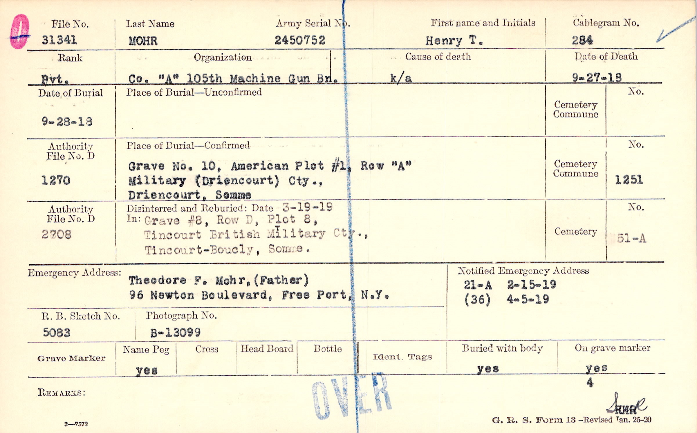 Theodore F. Mohr, (Father), 96 Newton Boulevard, Free Port, N.Y.