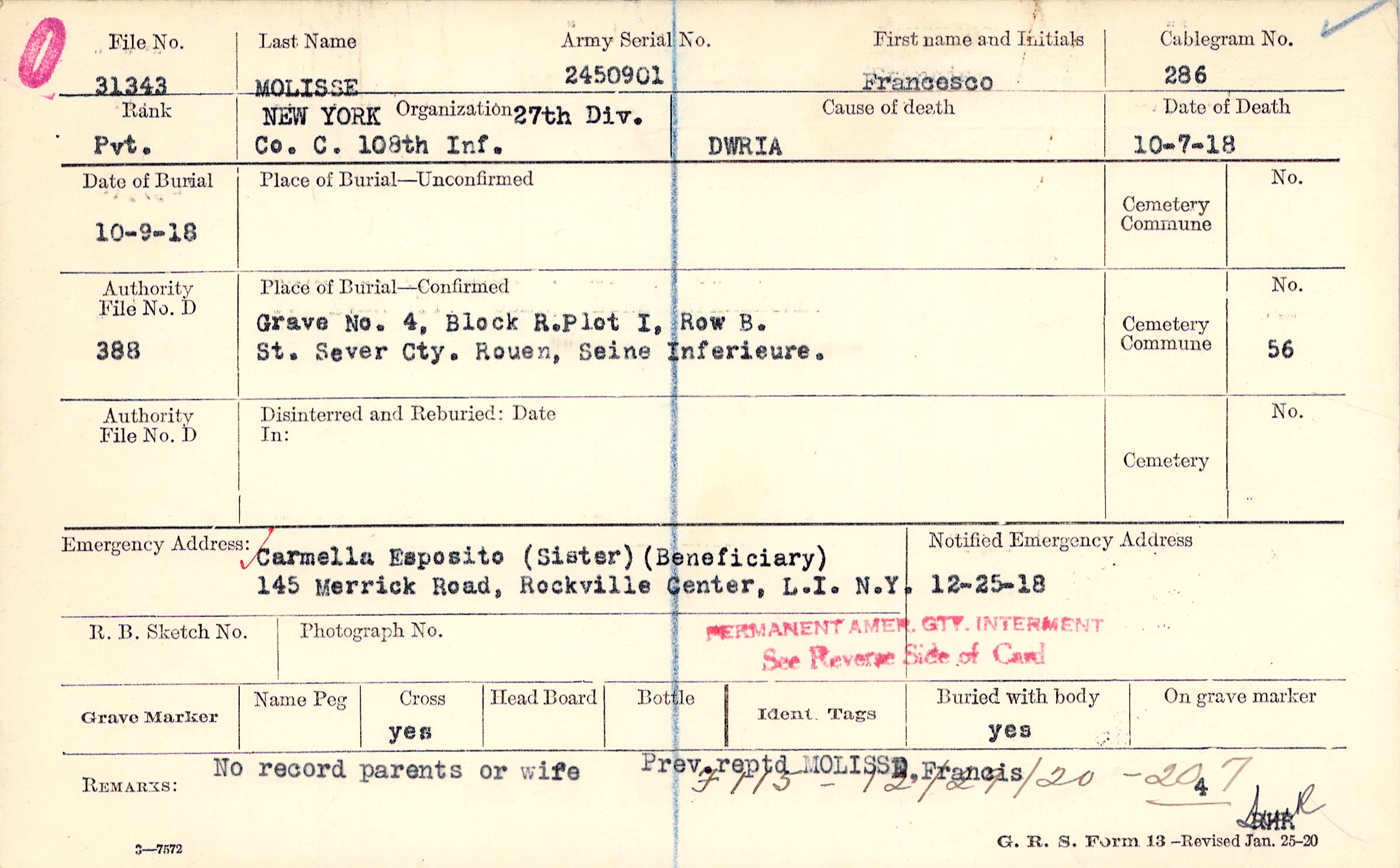 Grave 4, Block R, Plot I, Row B, St. Sever Cty., Rouen, Seine Inferieure.
