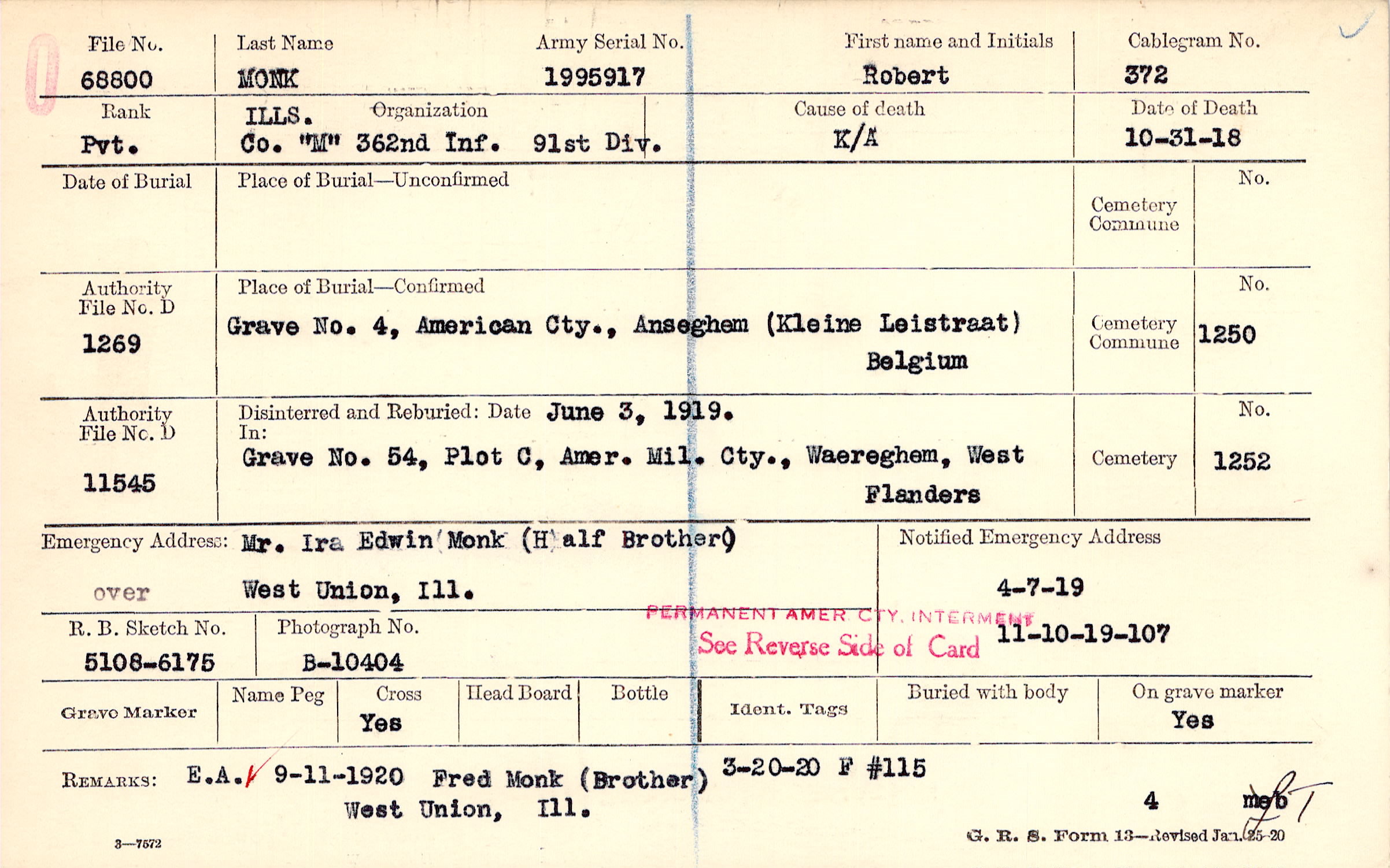 Grave 4, American Cty., Anseghem, Kleine Leistraat, Belgium