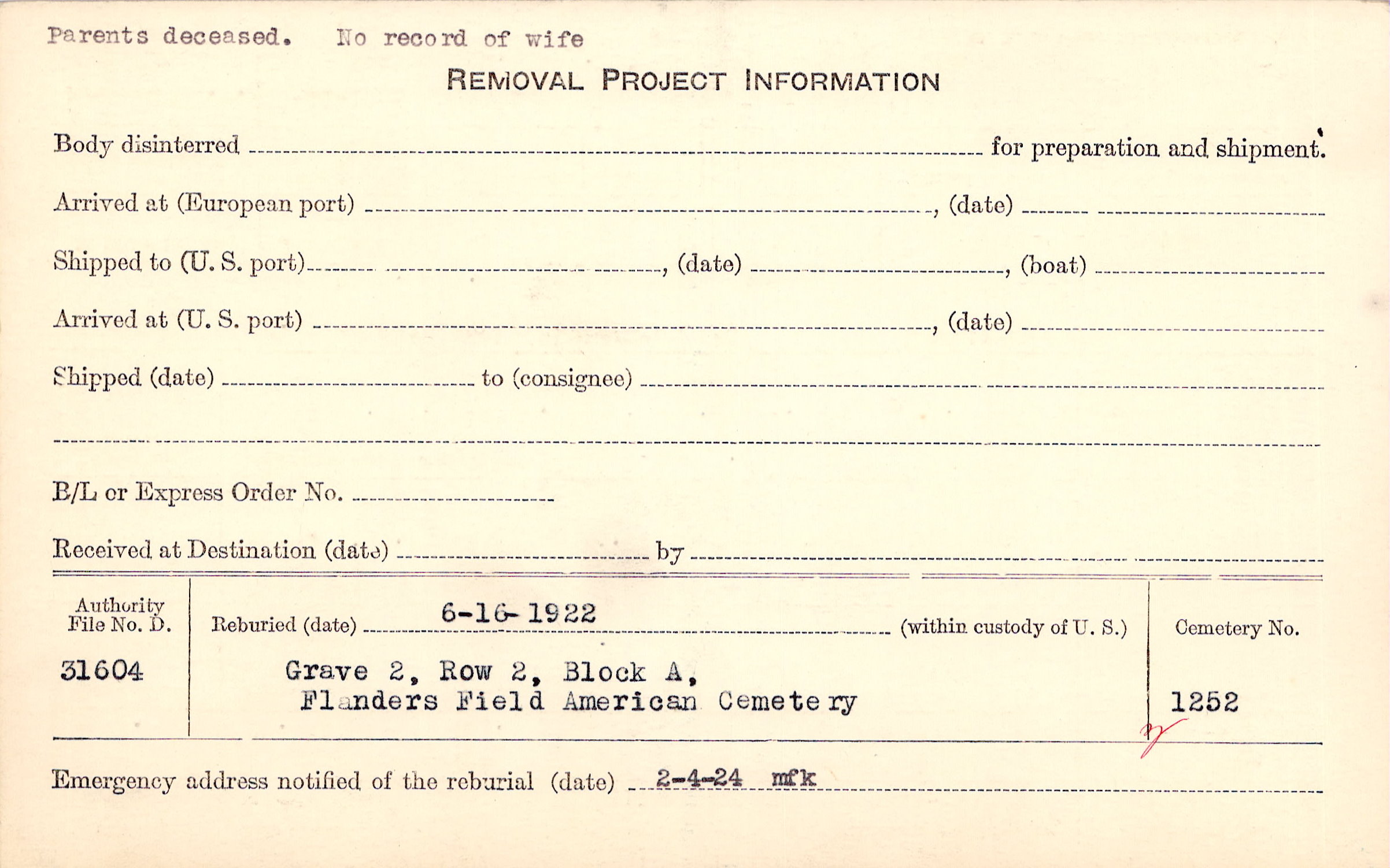 Grave 54, Plot C, American Cemetery, Waereghem, West Flanders