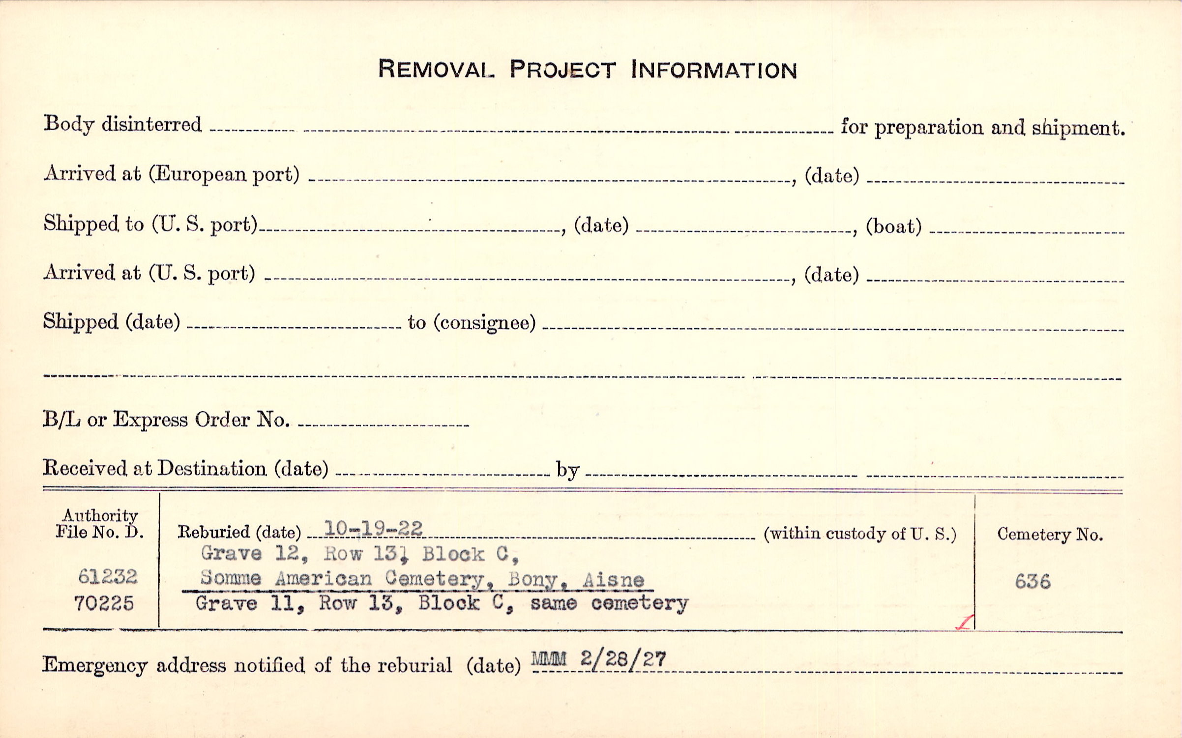 Prior Burial in Foreign Cemetery |
