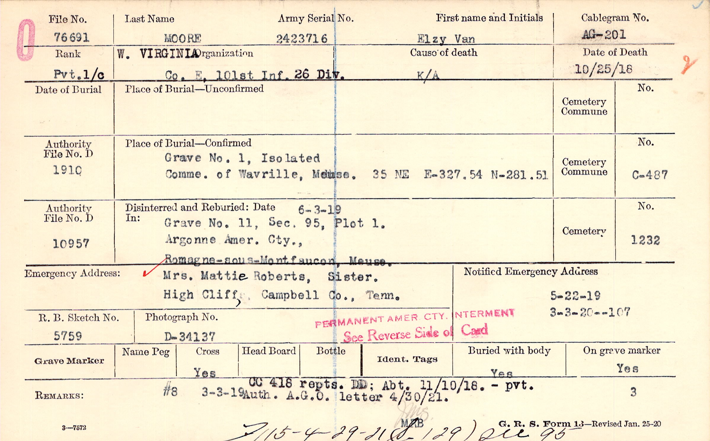 Grave 1, Isolated, Comme. of Wavrille, Meuse., 35 NE