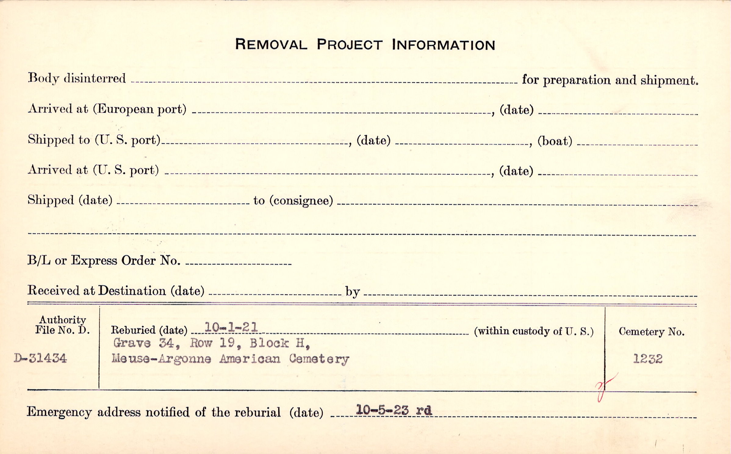 | Permanent Burial in Foreign Cemetery |