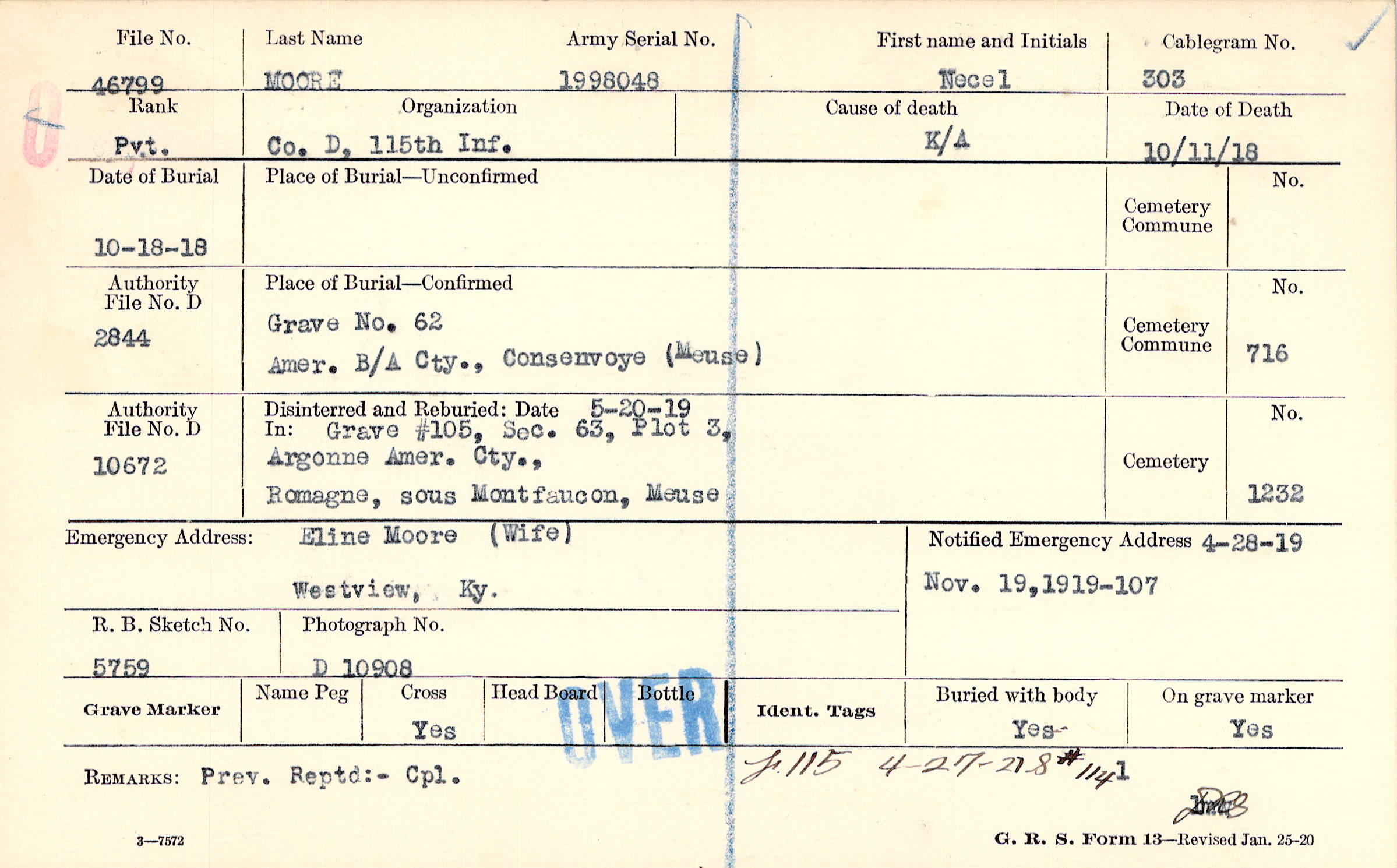 Eline Moore (Wife), Westview, Ky., Prev. Reptd: - Cpl.