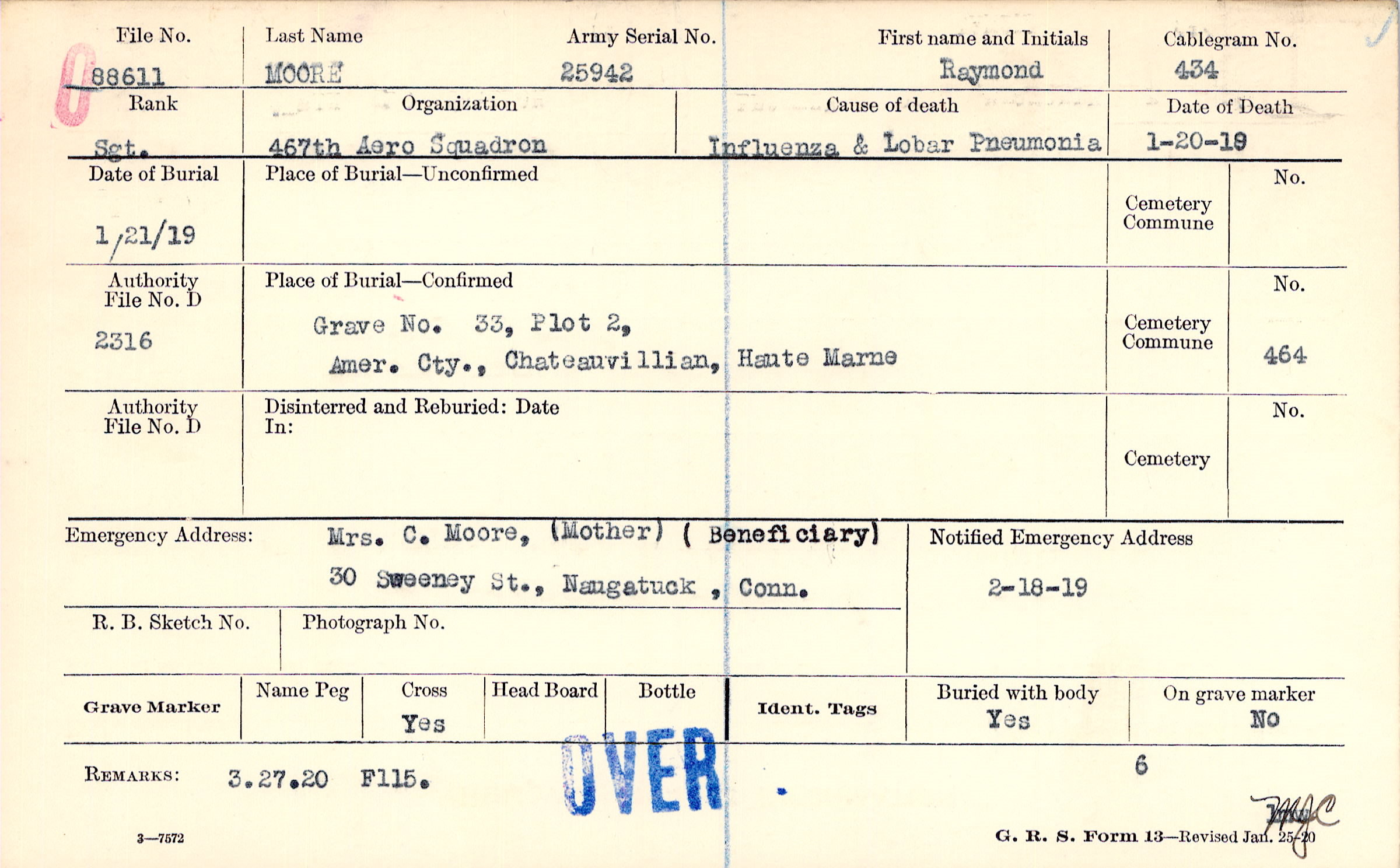 Grave 33, Plot 2, Amer. Cty., Chateauvillian, Haute Marne