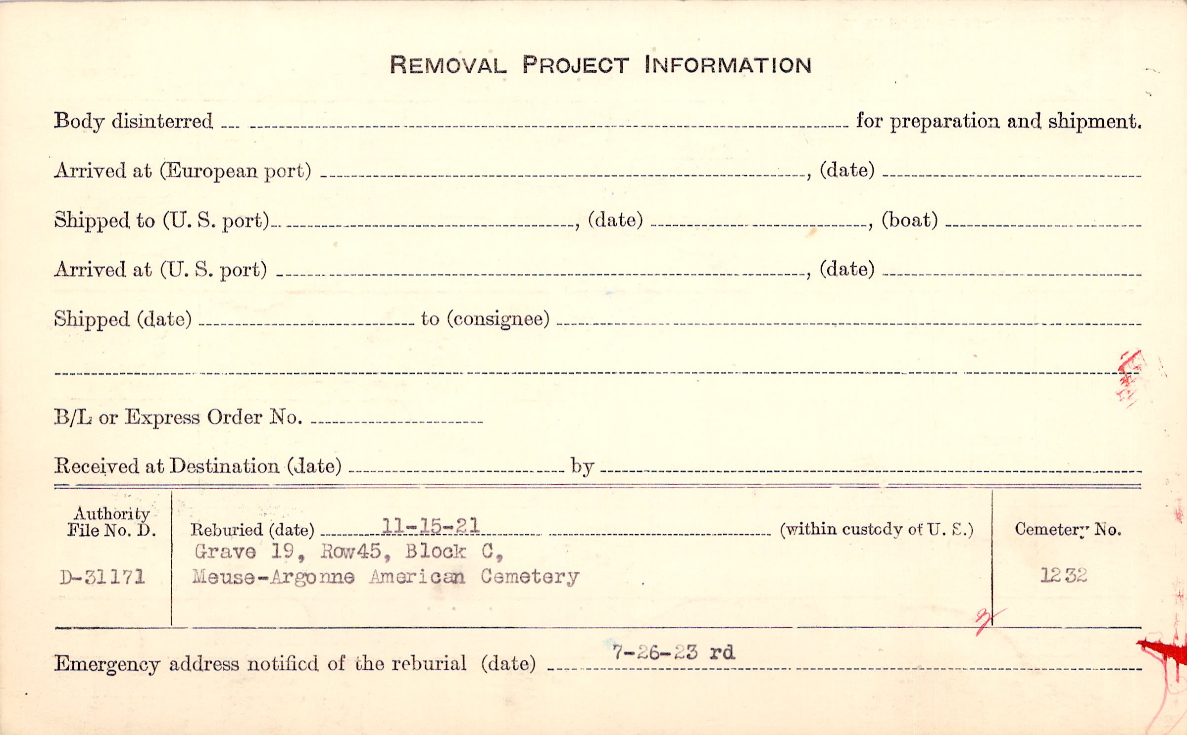 | Permanent Burial in Foreign Cemetery |