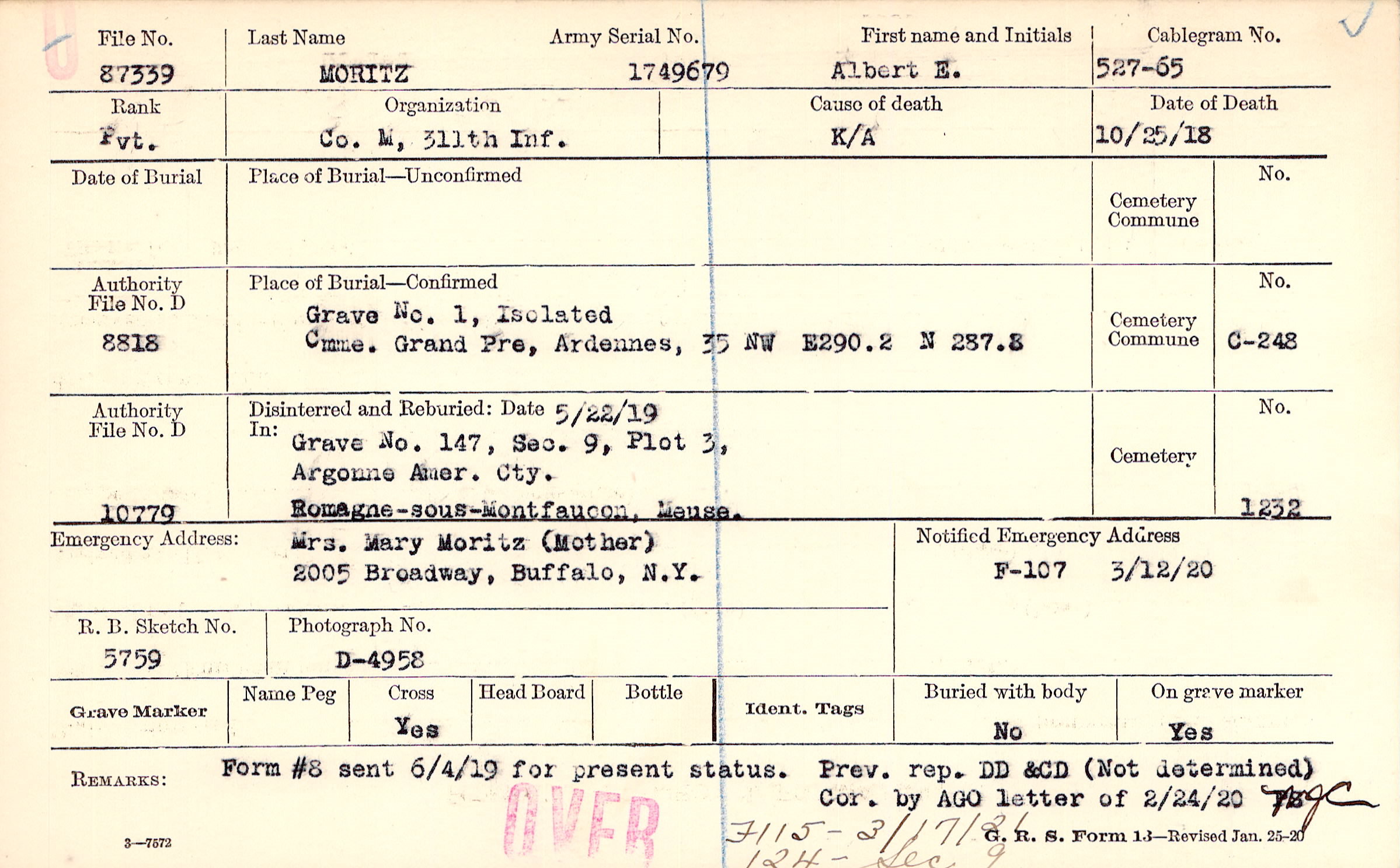 Grave 1, Isolated, Cmme. Grand Pre, Ardennes, 35 NW